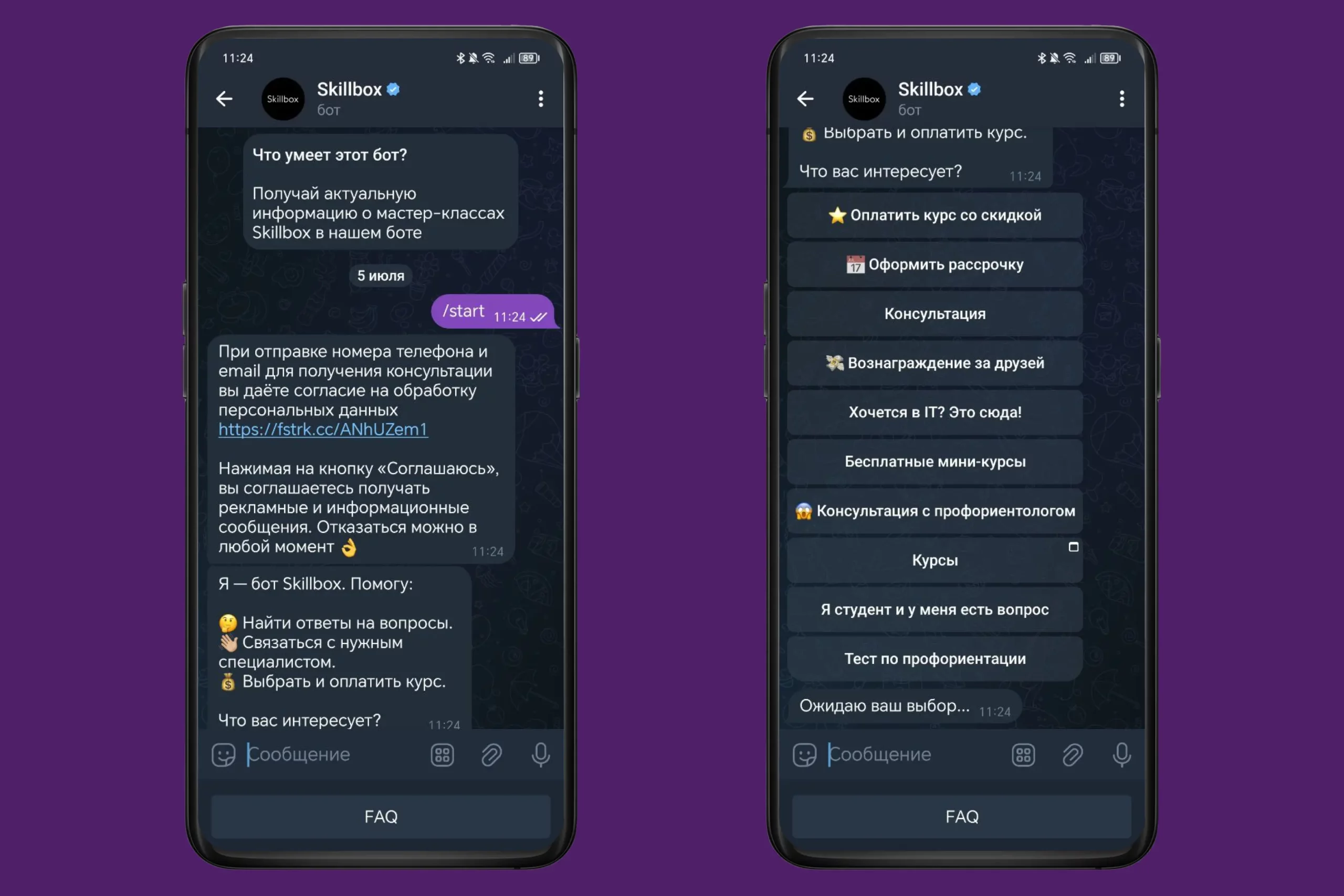 Чат-боты работают круглосуточно, поэтому обратиться за помощью можно в любое время дня и ночи.