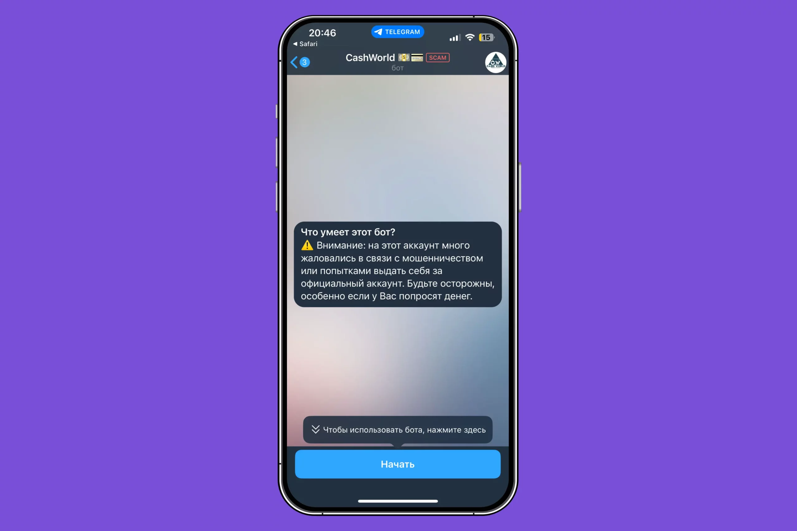 Например, в Telegram рядом с именем чат-бота может находиться красная плашка Scam. Такую метку выдает сам мессенджер мошенническим ботам, чатам или каналам после многочисленных жалоб пользователей. Легкий заработок, фальшивые розыгрыши, продажа несуществующих товаров и услуг, злоумышленник выдает себя за другого человека или официальную компанию — все это примеры скама.
