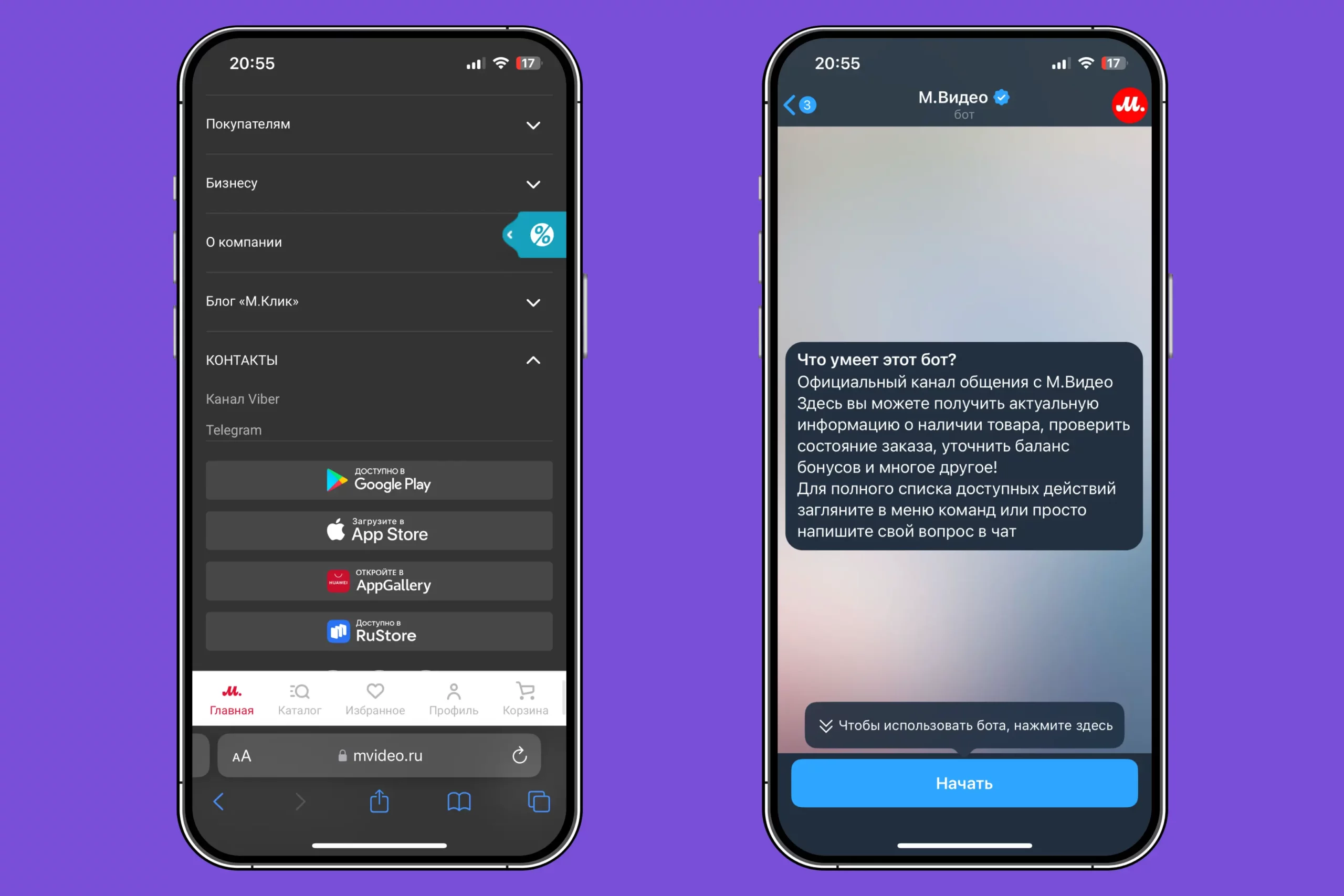 Если пользователь находится в диалоге с подставным чат-ботом, которому доверяет, считая, что общается с официальным ботом компании, то он может даже перейти по подставным ссылкам. В итоге пользователь окажется на сайте, который, например, эмулирует сайт «М.Видео». При таком сценарии можно потерять доступ к своему аккаунту, а вместе с ним и все накопленные Бонусные рубли или произвести оплату, которая на самом деле уйдет на другие реквизиты.