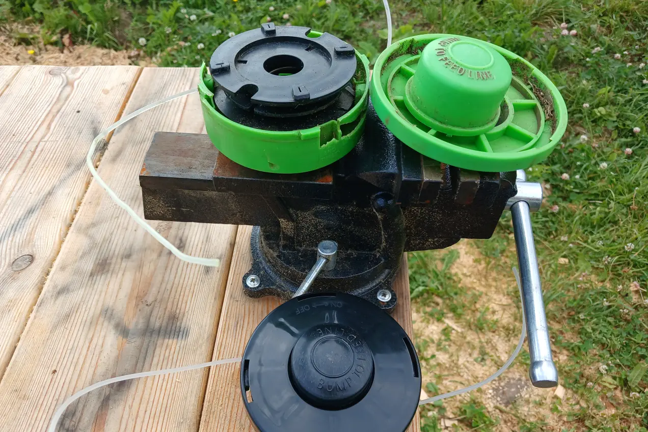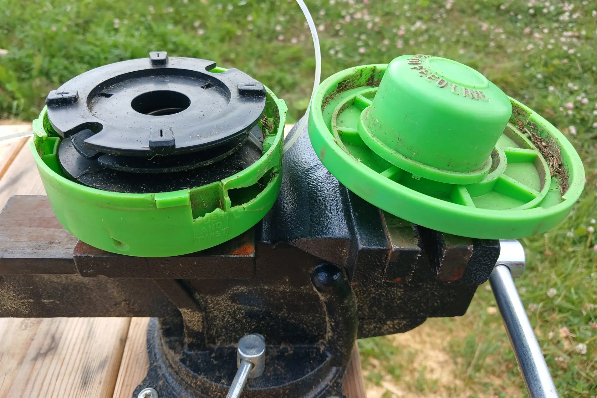 Для замены была приобретена новая полуавтоматическая катушка с леской толщиной 2,5 мм, лучшим качеством пластика и способом крепления крышки.