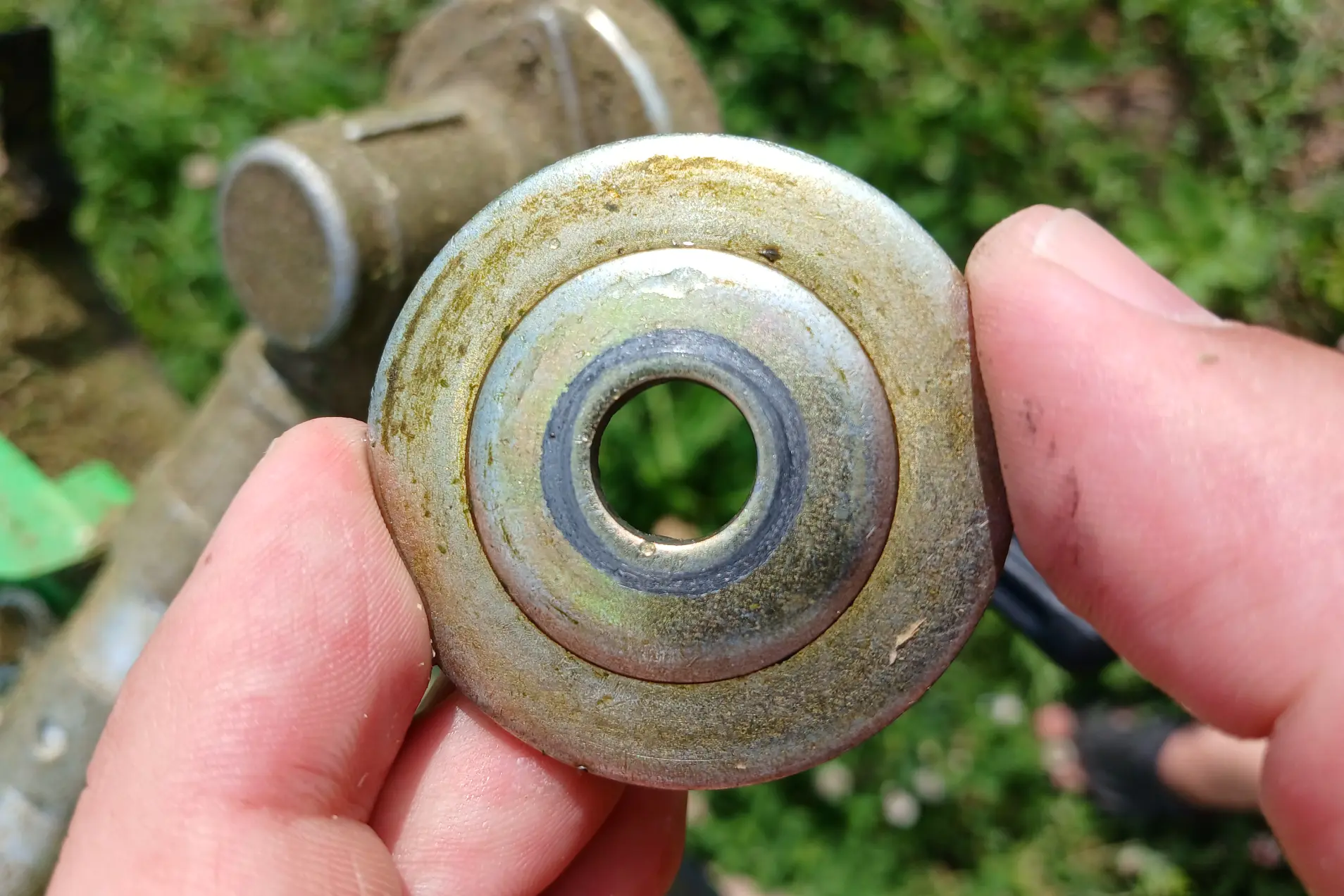 После этого можно начинать откручивать катушку. Наш «подопытный» экземпляр с левой резьбой, поэтому отвинчиваем его по часовой стрелке. Запоминаем расположение промежуточной шайбы (при наличии) и стараемся не потерять ее.