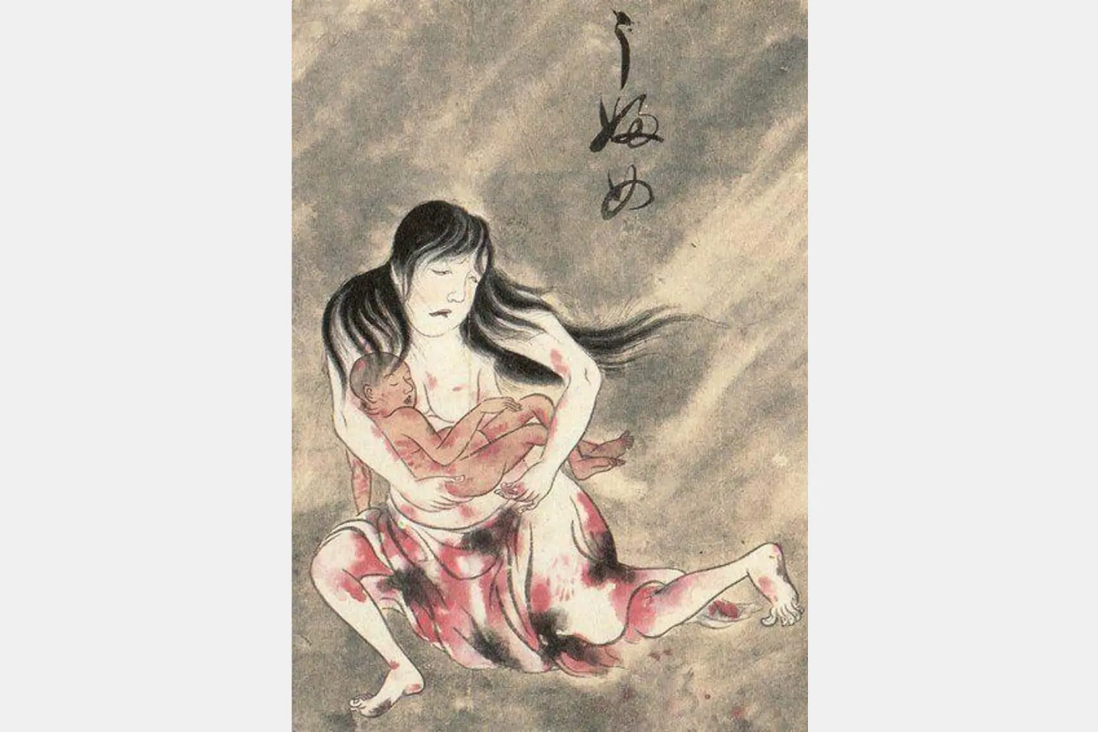 Вторая версия основана на японской легенде, прочитать которую можно еще в произведениях XII века. По ней Момо — призрак беременной женщины, которая умерла во время родов, а ее дух продолжает бродить по земле. Верхняя часть ее тела оголена, а нижняя обернута в окровавленную белую ткань. Некоторые японцы до сих пор верят в эту легенду и, чтобы избежать появления злого духа, кладут в могилу погибшей при родах женщины куклу, которая заменяет ей ребенка.