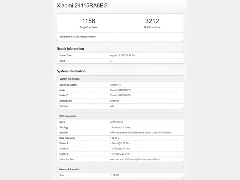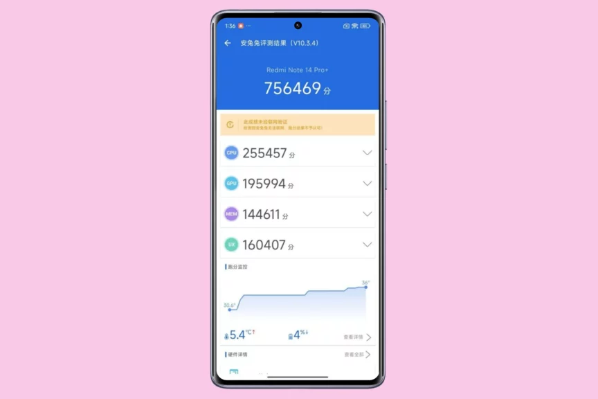 Внутри Note 14 Pro+ стоит процессор Qualcomm Snapdragon 7s Gen 3 и 8 или 12 ГБ оперативной и 256 или 512 ГБ постоянной памяти. В бенчмарке AnTuTu гаджет набирает 756 469 баллов, а в GeekBench — 1156 и 3212 баллов в тестах одного и всех ядер соответственно. Результат прогона «встройки» — 4495 баллов. Слота для карты памяти нет.