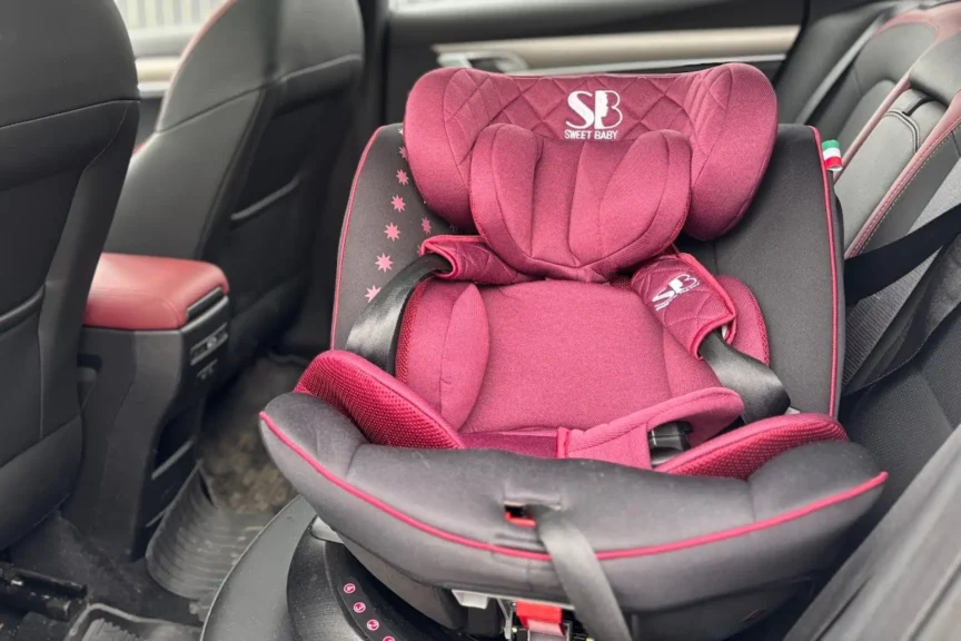 Здесь важна прежде всего безопасность — кресло должно соответствовать современным стандартам, поэтому не рекомендуется использовать старые модели. Мы выбрали практичный вариант — автокресло, которое «растет» вместе с малышом, и его можно использовать от 0 до 12 лет. По мере взросления ребенка убираются дополнительные вкладыши, ремни, спинка кресла. Модель крепится к машине с помощью базы isofix — это безопаснее, чем обычными ремнями, и удобнее, потому что кресло крутится на 360° вокруг своей оси. Можно развернуть кресло боком к двери, посадить туда ребенка, а затем уже повернуть против или по ходу движения машины, в зависимости от возраста и веса ребенка.