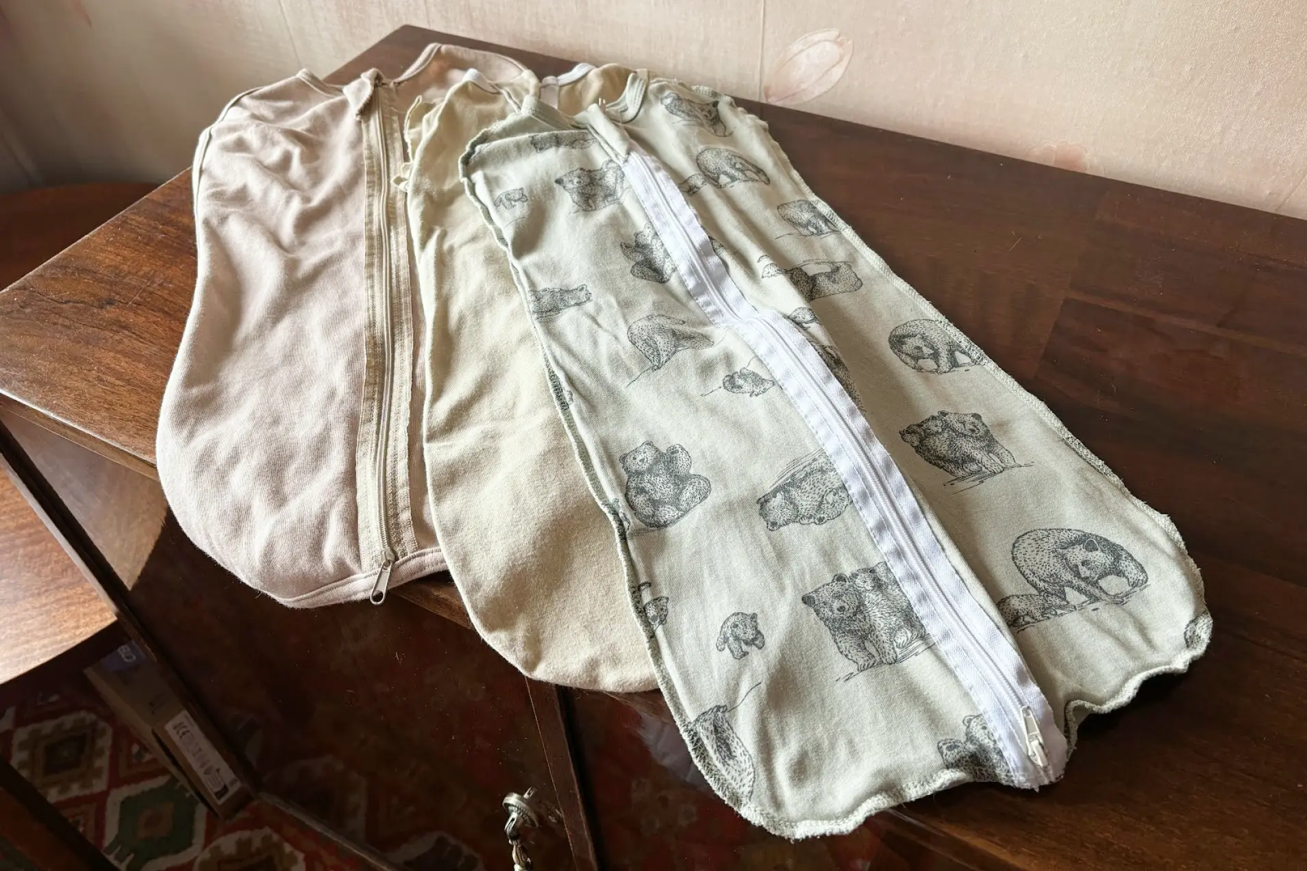 Докупали мы только спальные мешки для ребенка. Это оказалось очень удобно, чтобы он спокойно лежал и не будил себя резкими движениями рук и ног. С этими же целями можно пеленать малыша, но нам проще с мешком.