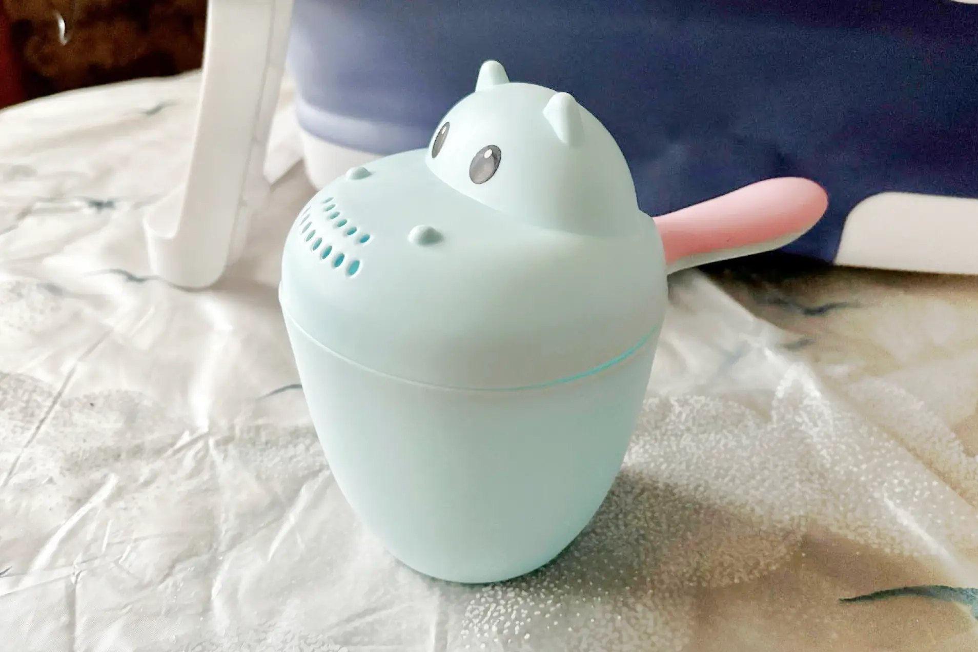 Также пригодится кувшин для мытья. Можно использовать любую емкость для воды, но нам понравилась такая милая модель с бегемотиком.