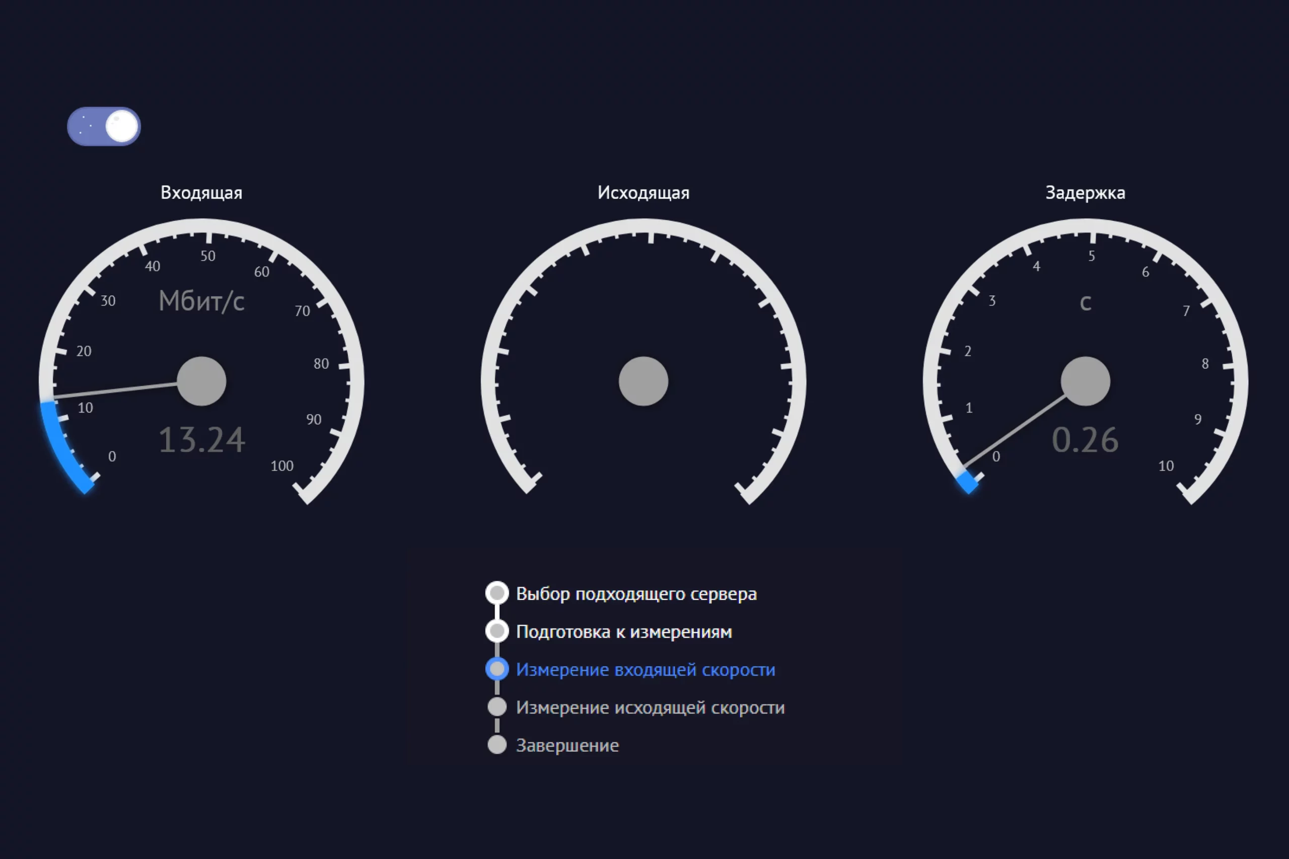Русский аналог Speedtest, разработанный в «Ростелеком», а значит, ему как минимум не грозит блокировка. Сервис позволяет как быстро измерить основные параметры (загрузку, отдачу, пинг и джиттер), так и вручную настроить серию тестов при разной нагрузке.
