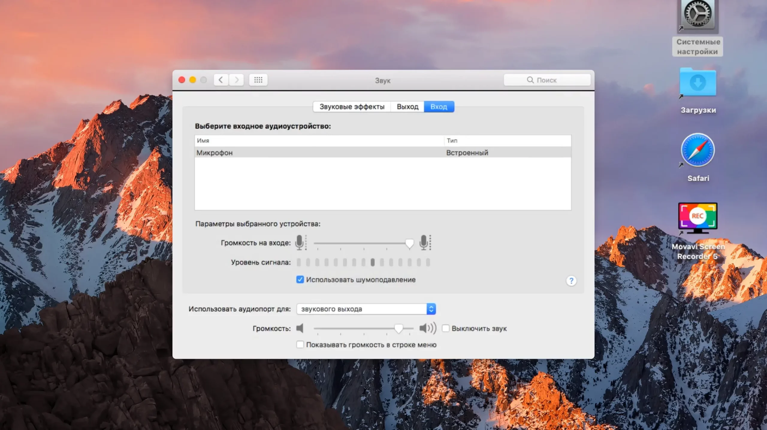- отрегулируйте уровень звука с микрофона с помощью ползунка «Громкость на входе». Если нужно убрать окружающий шум, поставьте галочку «Использовать шумоподавление».
