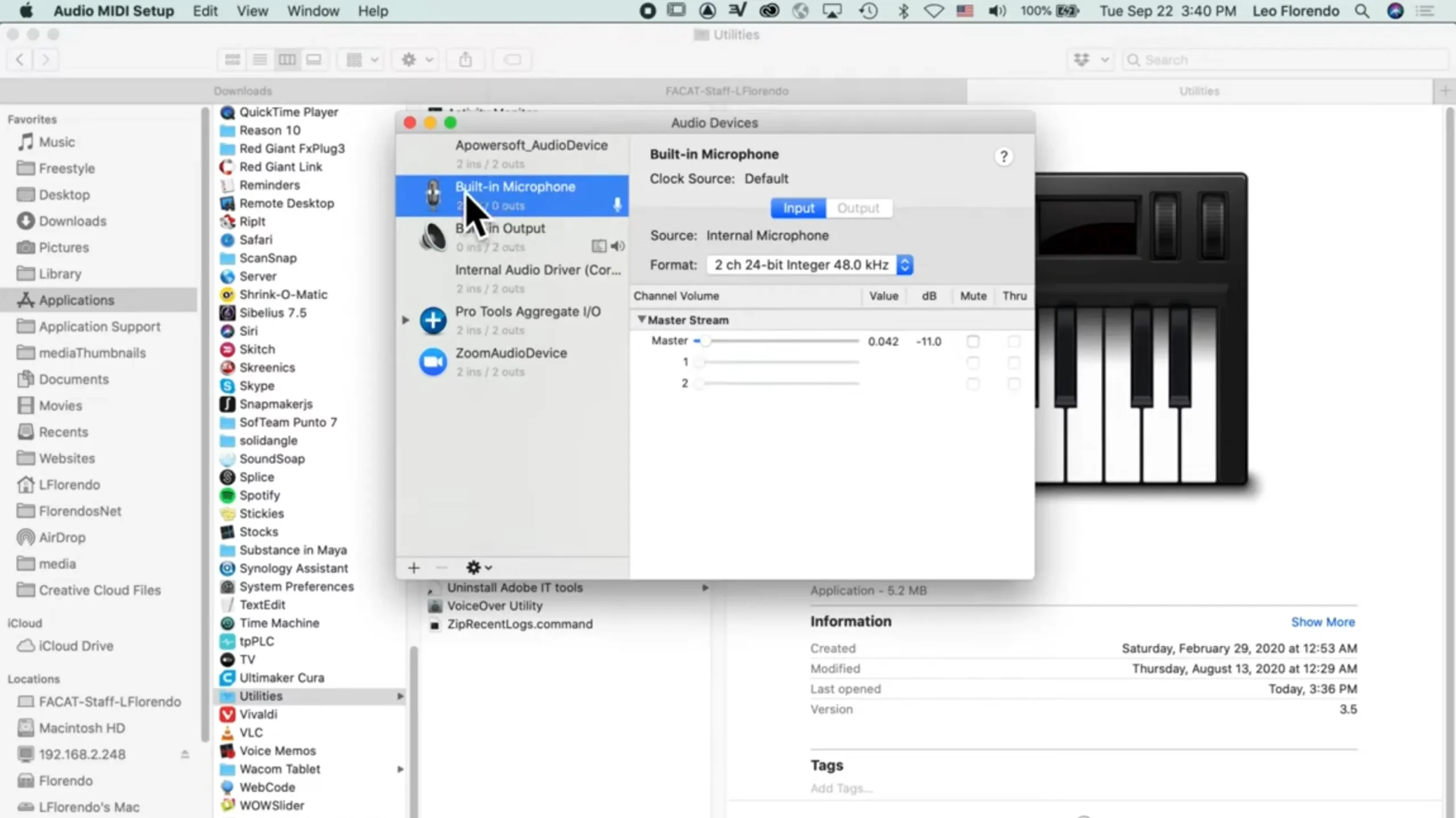 Расширенные настройки микрофона на macOS есть в приложении Audio MIDI Setup. Открыть его можно через «Приложения» — «Утилиты». В Audio MIDI Setup можно выбрать: