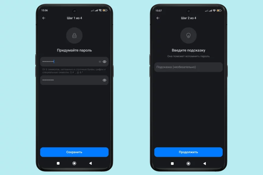 Код создается в 4 шага: вводится сам шифр, затем подсказка, E-mail и код подтверждения с почты.