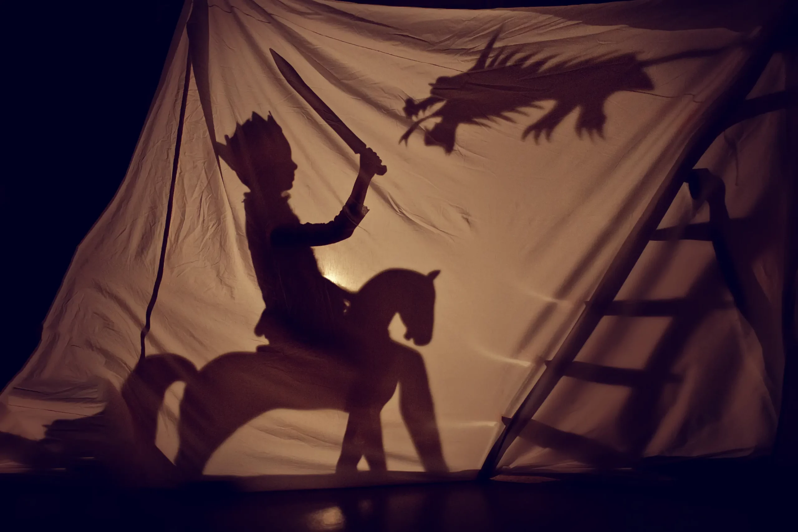 В некотором смысле театр теней использует более аскетичные средства выразительности, чем кукольный или обычный. И главную роль здесь будут играть освещение и музыкальное сопровождение. Зато устраивать спектакль проще: нужны только экран, лампа и вырезанные бумажные персонажи. Впрочем, никто не мешает смешать разные элементы и добавить в постановку кукольную часть или живых актеров.
