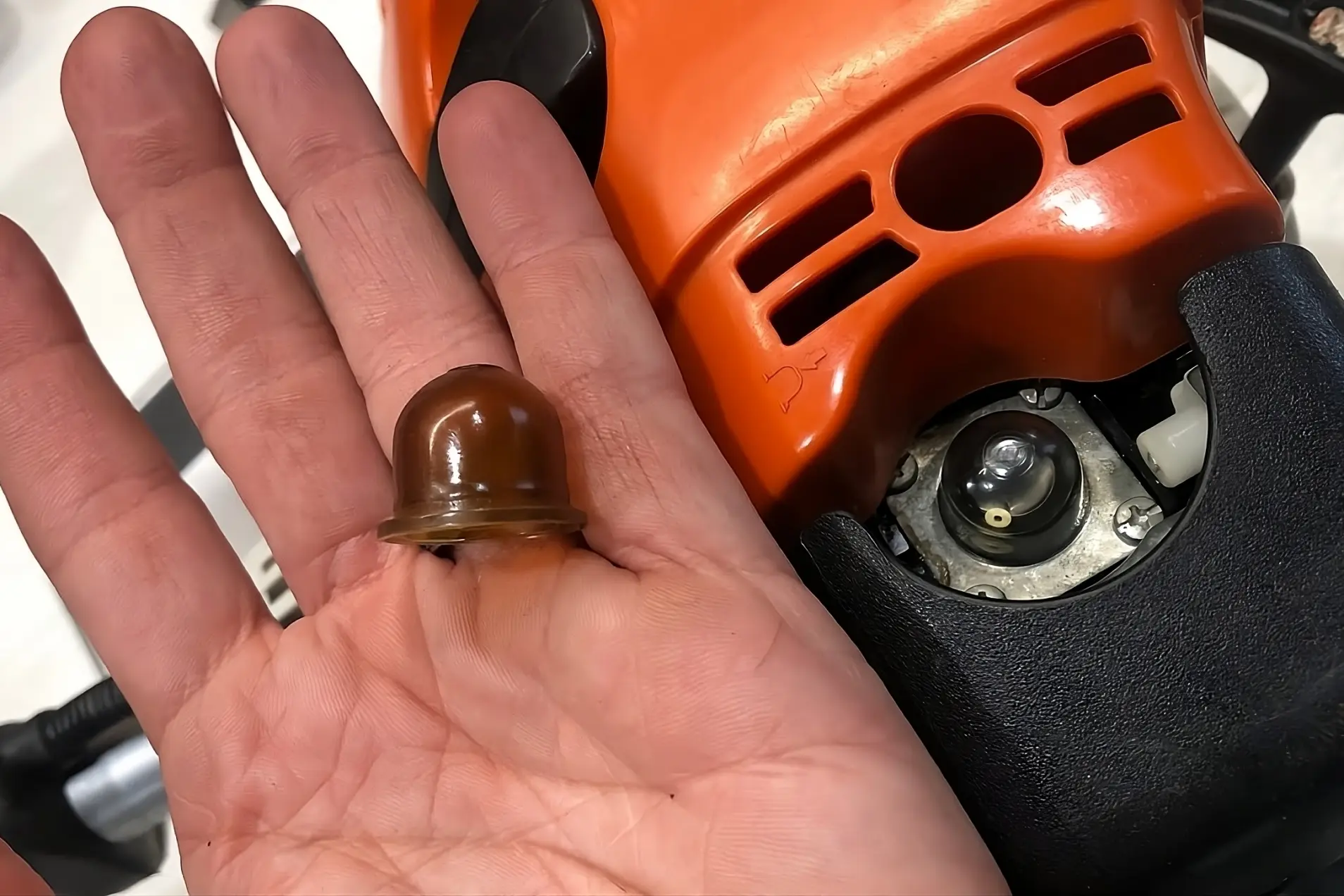 5. Используйте кнопку подкачки топлива (она обычно изготовлена из прозрачного силикона). Нажмите на нее не более пяти раз — ее внутреннее пространство должно быть заполнено бензином.