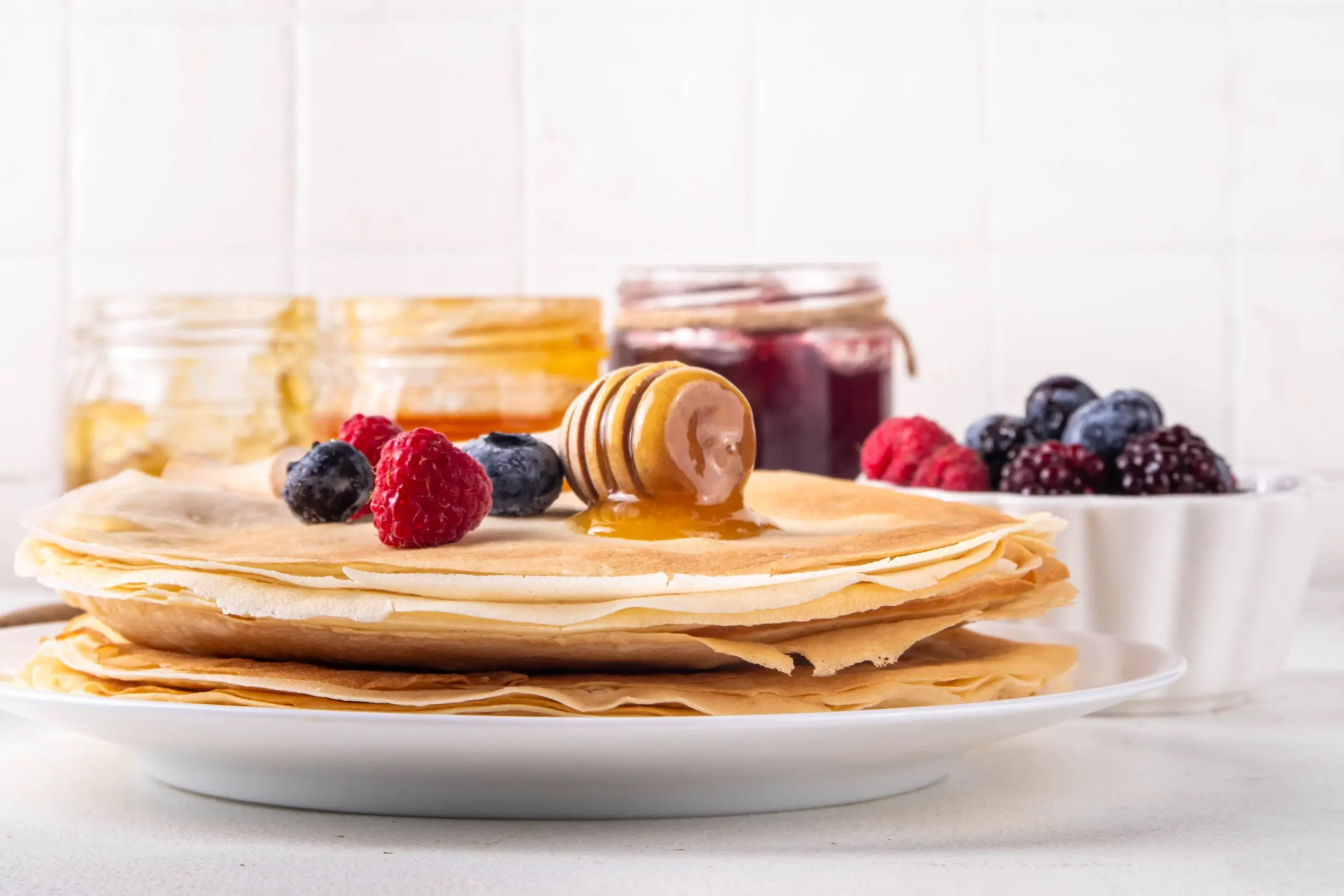 Рецепт тонких и вкусных блинов на молоке. С «дырочками» — все, как мы любим. Подавайте их отдельно или со сладкой начинкой, например вареньем, творогом, медом или сгущенным молоком.