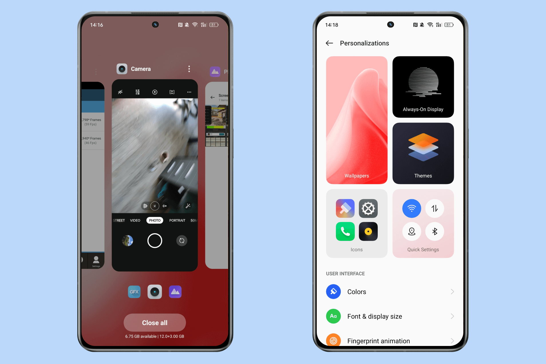 Как и раньше, пользовательский интерфейс Realme предлагает глубокую настройку — можно выбирать акцентные цвета (или комбинацию акцентных цветов), обои, значки, форму быстрых переключателей, а также шрифт и размер. Все эти настройки находятся в подменю «Персонализация».
