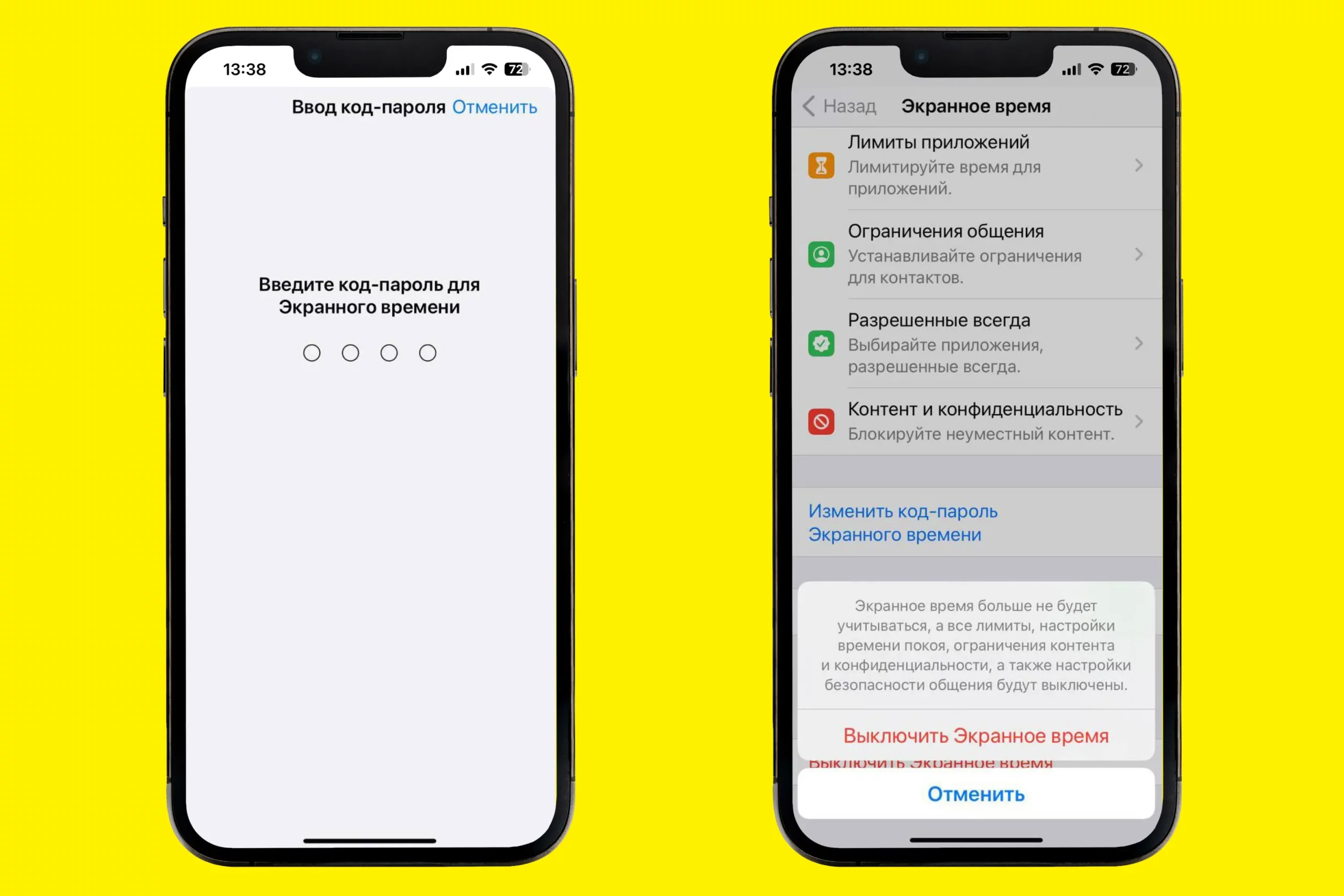 - Снова кликните на «Выключить экранное время»