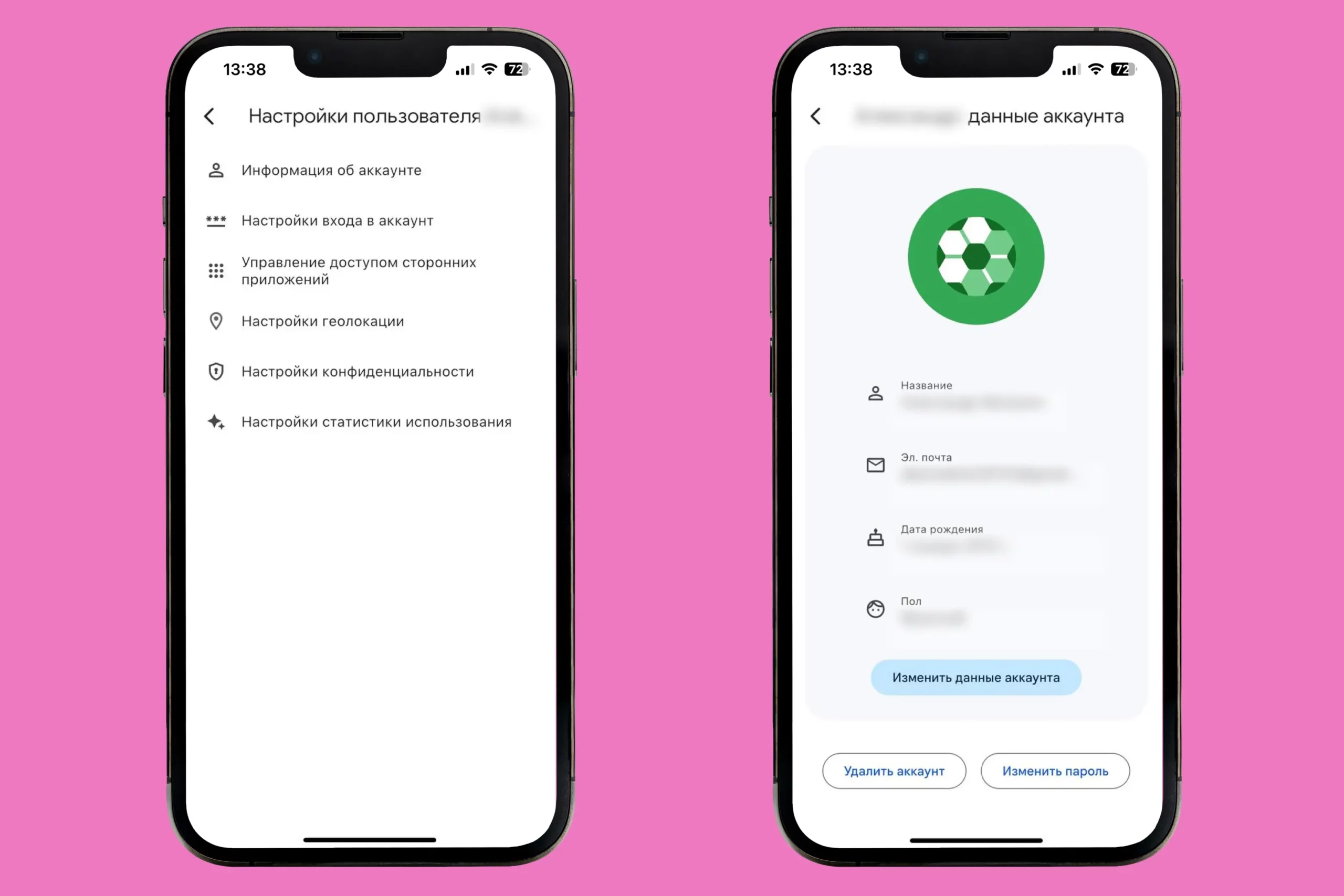 - Откройте настройки аккаунта