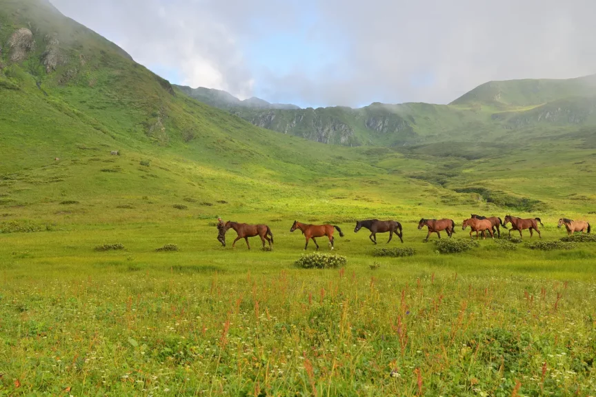 - Рай для любителей трекинга и хайкинга. Здесь есть туристические маршруты для любого уровня подготовки: от легких прогулок до сложных походов к ледникам и перевалам. Одни из лучших направлений — Алибекский водопад, ущелье Аманауз и Турье озеро.