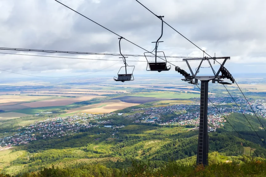 - Домбайские подъемники откроют лучший обзор Кавказа. На высоте 3000 метров чувствуешь себя на вершине мира, а если повезет, можно увидеть двуглавый Эльбрус. Подъемники находятся в самом сердце курорта — на Домбайской поляне. Здесь можно купить сувениры, попробовать местную кухню (хычины и кавказский сыр обязательны!) и прочувствовать весь колорит Кавказа.