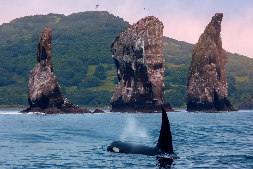 - Курильские острова — дом для множества редких видов птиц и морских животных. Отправьтесь на морскую прогулку, чтобы увидеть китов, касаток и морских львов в их естественной среде обитания.