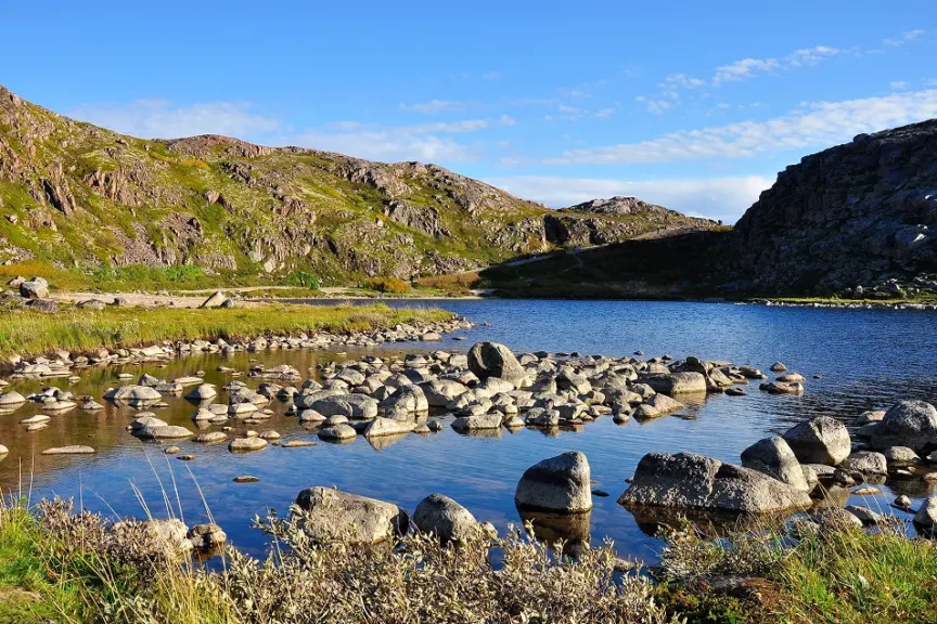 - Прогуляйтесь по бескрайним просторам тундры, наслаждаясь уникальной флорой и фауной, а также потрясающими видами на Северный Ледовитый океан. Если любите водные виды спорта, испытайте себя — покорите холодные воды Баренцева моря на каяке или сапборде, любуясь видами суровых скал и бескрайнего горизонта.