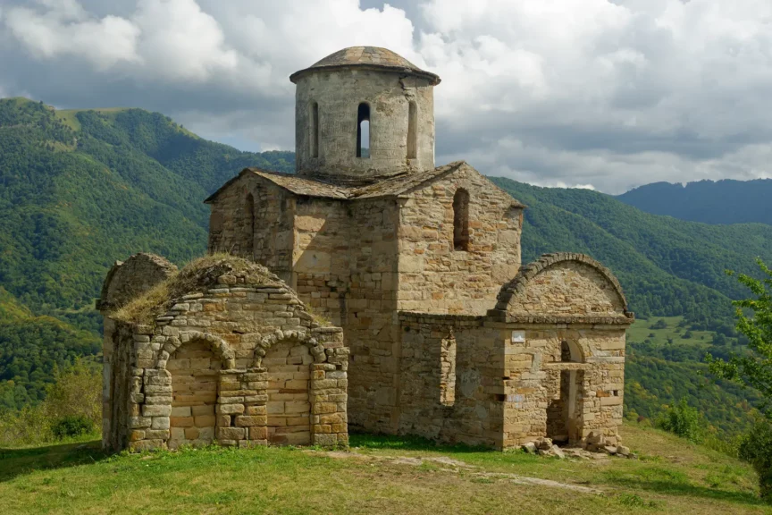 - На Домбае стоит один из самых древних христианских храмов в России — Сентинский, он датирован X веком. Он располагается на горе, проехать на обычной машине к нему сложно, но местные жители организуют экскурсии для осмотра.