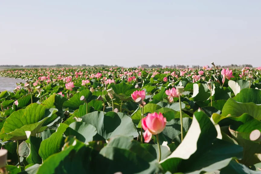 - Пляжи на Каспийском побережье широкие, песчаные, без привычных лежаков и громкой музыки. Берег пологий, вода прогревается быстро — идеально для спокойного отдыха с маленькими детьми. В дельте Каспия несколько тысяч рукавов и каналов, по которым можно прокатиться на лодке. Летом вода цветет лотосами, а в воздухе — тысячи птиц, включая редких пеликанов.