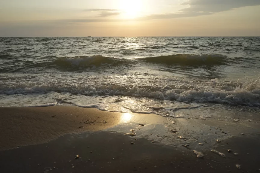 Азовское море — самое мелкое в России, а значит, вода здесь нагревается быстрее всего. В июне-августе температура может доходить до +26…+28°, так что купаться можно с утра до вечера без риска замерзнуть. А еще здесь нет сильных волн, что делает азовские пляжи популярным местом отдыха для родителей с маленькими детьми.