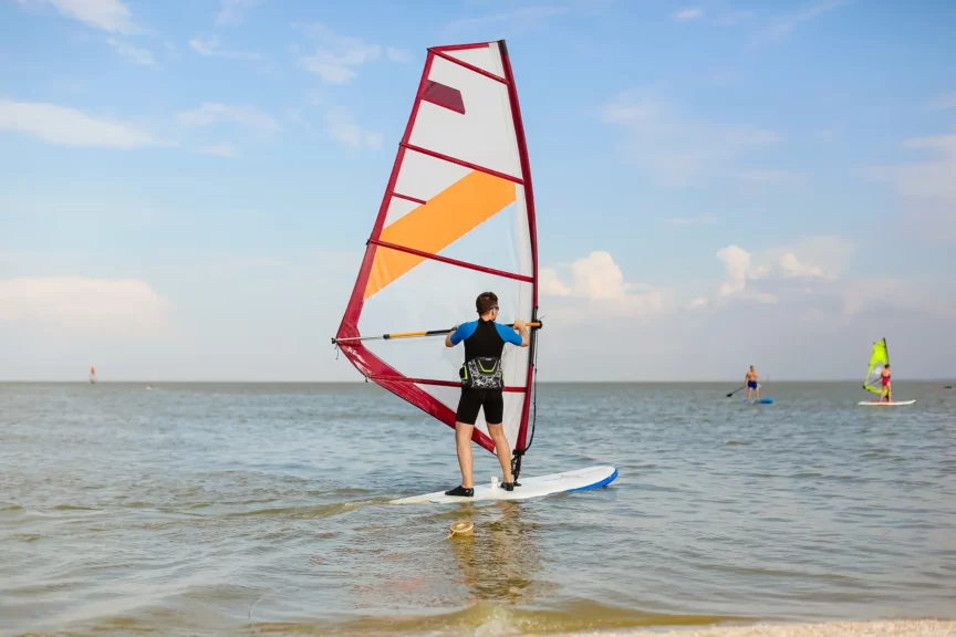 - В Ейске есть и песчаные, и ракушечные пляжи, а море у берега неглубокое — даже взрослым приходится идти несколько метров, прежде чем поплыть. Здесь небольшие волны и теплый ветер — подходящее место для тех, кто хочет попробовать, например, виндсерфинг и кайтсерфинг. А для разнообразия есть даже аквапарк.