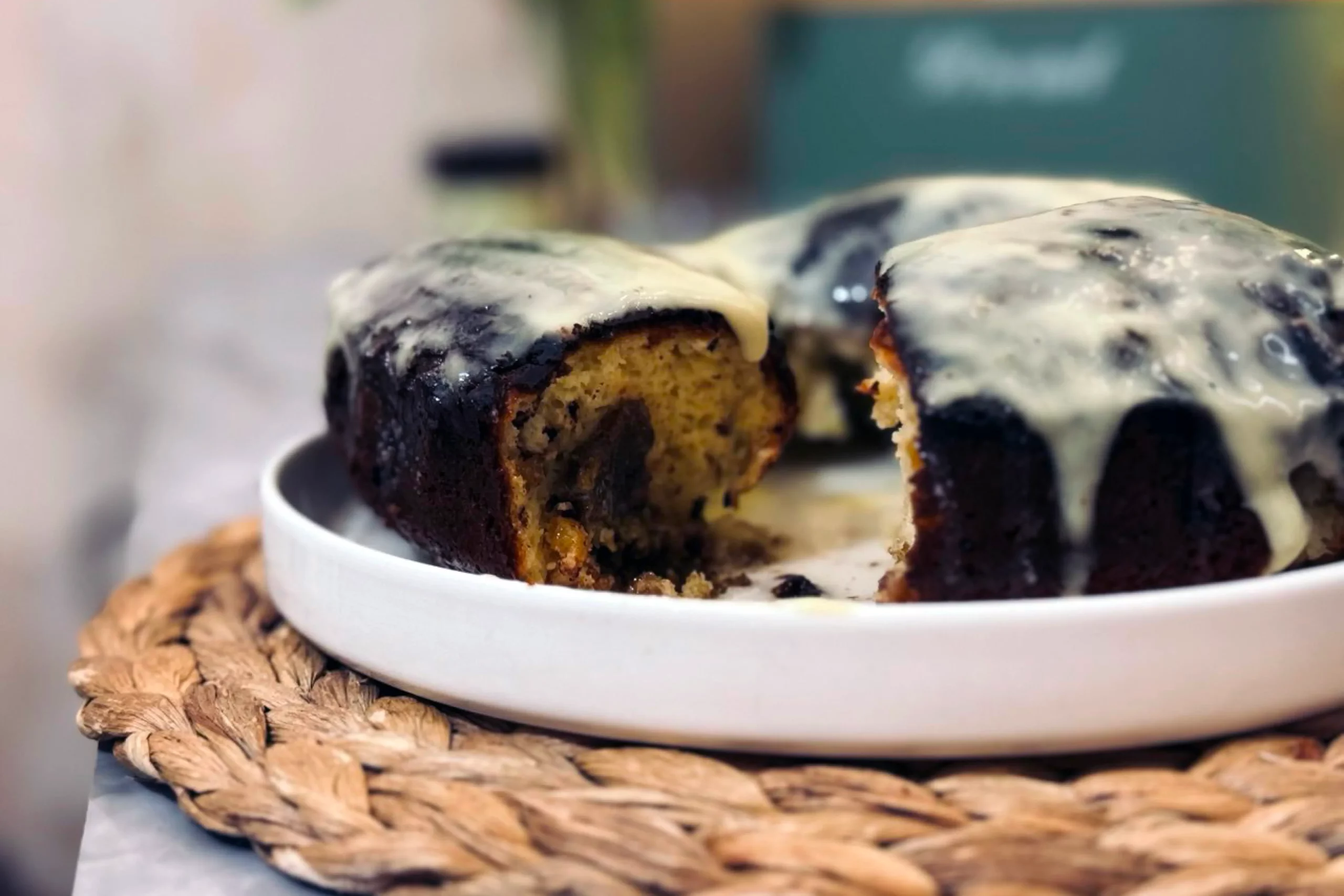 Как я и предполагала, паста оказалась не совсем правильной, поэтому цвет выглядит темнее и начинка не «выплывает» из разрезанного кулича, как я планировала изначально. Нужно было положить больше пасты — видимо, лучше покупать сразу две пачки.