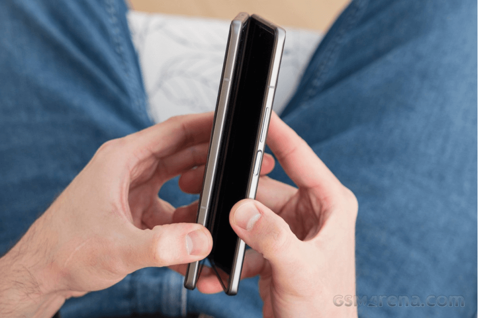 Ничего удивительного в этом, впрочем, нет — действительно, ведь как будто два смартфона раскладываются в ширину. Есть ощущение, что при разработке Fold V производители намеренно сделали ставку на массивность и внушительный размер — устройство получилось большим и впечатляющим. Кому-то даже может показаться, что называть такой смартфон «карманным» не очень правильно — не везде он влезет, да и оттягивать карман брюк или пиджака будет заметно.