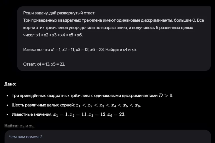 Эту задачу мы нашли в задачнике для Всероссийской школьной олимпиады за 2023−2024 учебный год. Посмотрим, как с ней справится ИИ.
