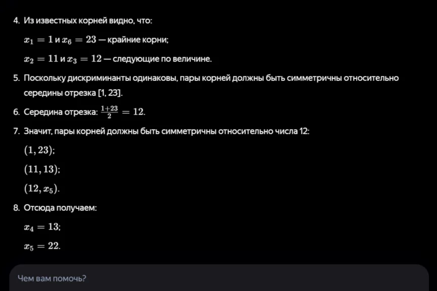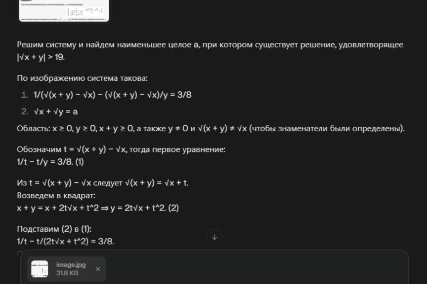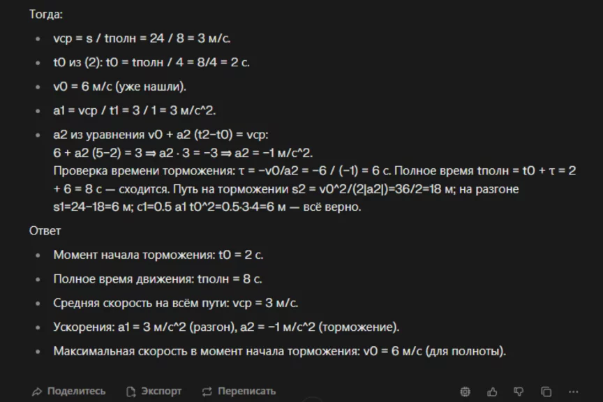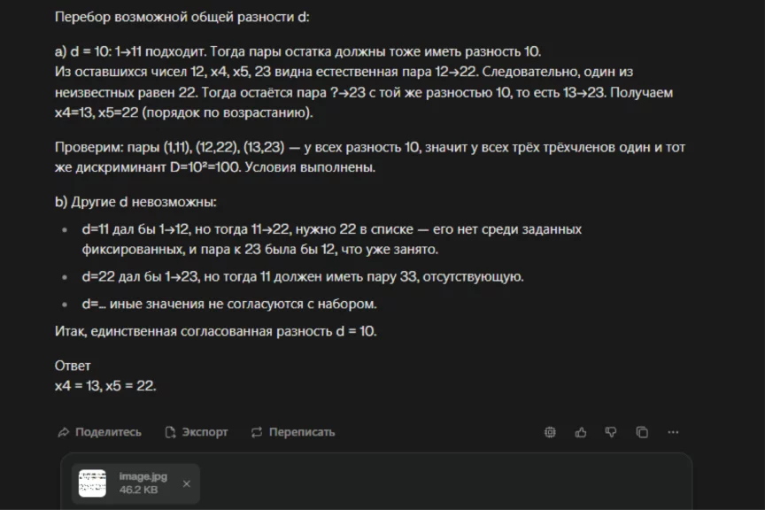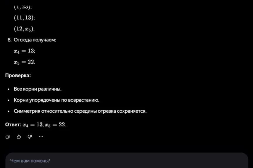 Как и в случае с первой задачей, ChatGPT подробно расписал решение и пришел к верному ответу.