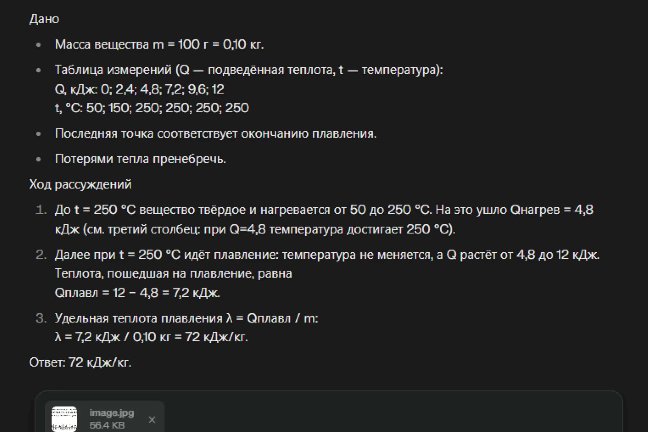 Это расчетная задача из Банка ФИПИ, относящаяся к теме «Плавление и кристаллизация». Важно не только дать правильный ответ, но и продемонстрировать понимание темы.
