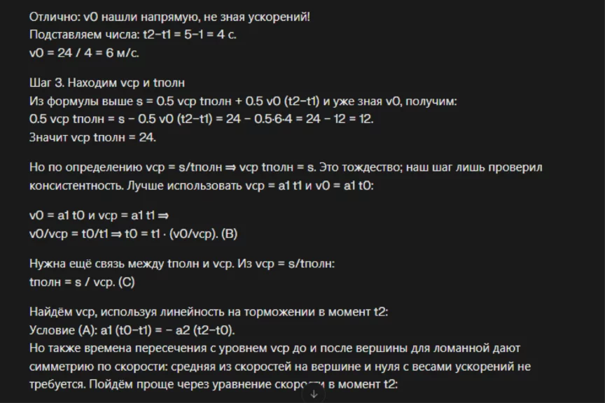 В ChatGPT 5.0 пришлось отправлять два последовательных запроса. Первый — на решение задачи. С этим он справился.