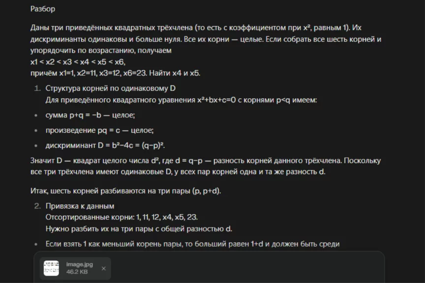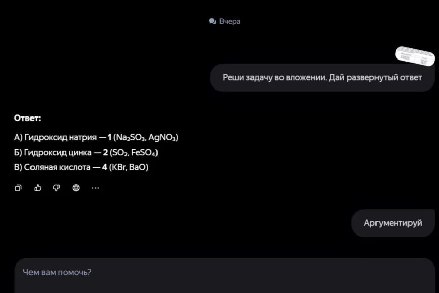Во всех случаях мы загружаем в ИИ скриншот из учебника и пишем запрос: «Реши задачу во вложении. Дай развернутый ответ».