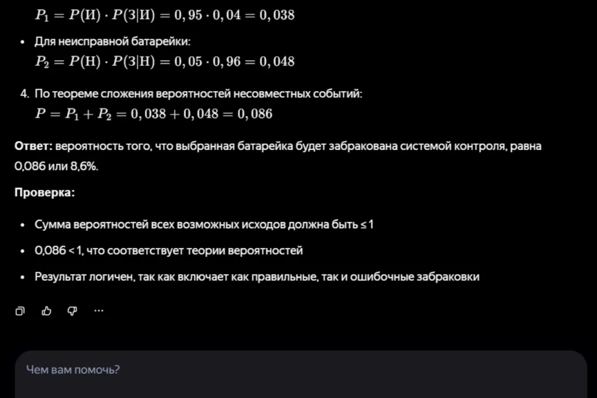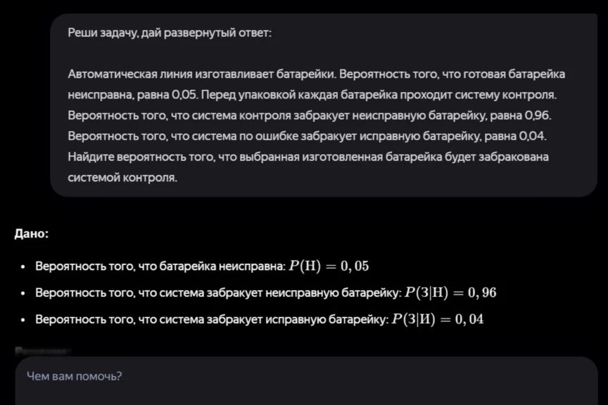 Предлагаем ИИ решить задачу по теории вероятности.