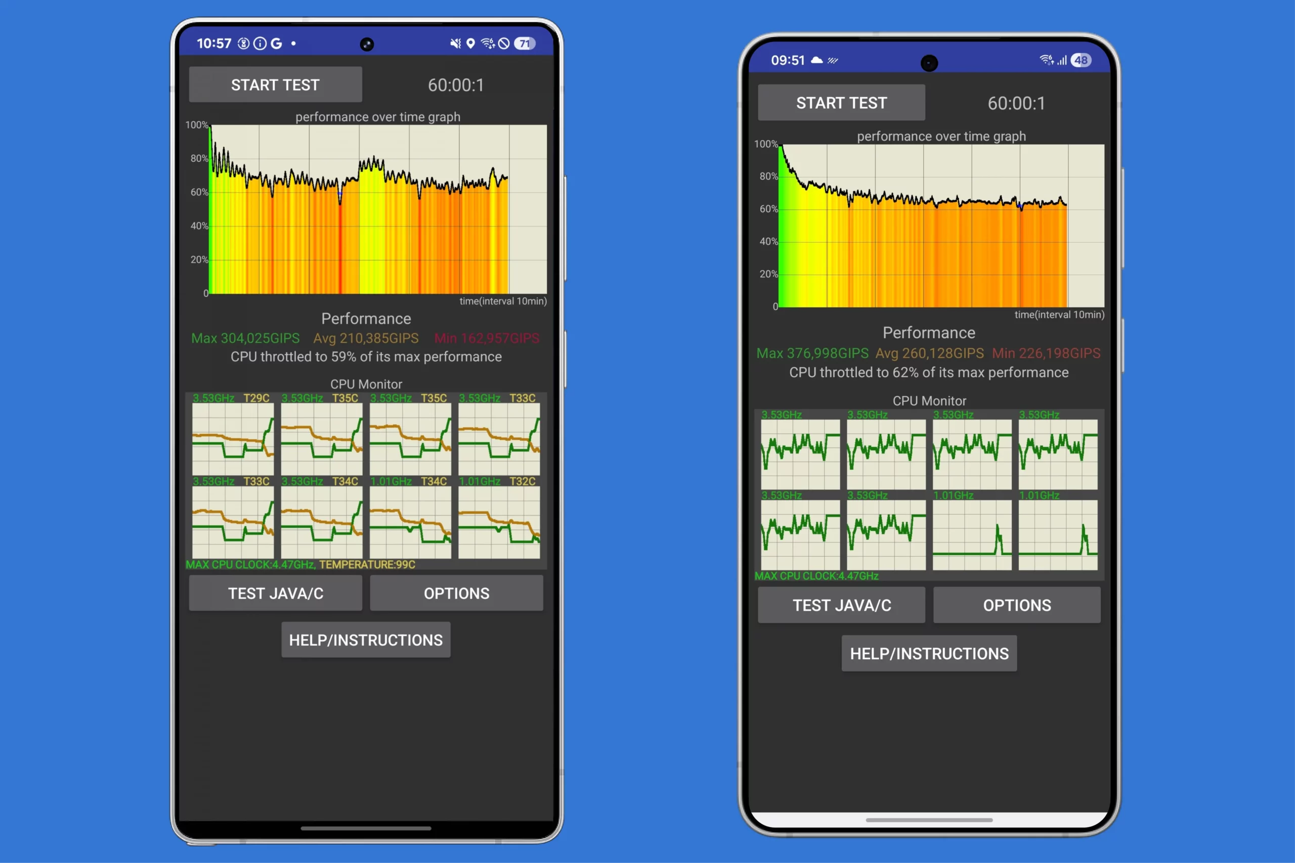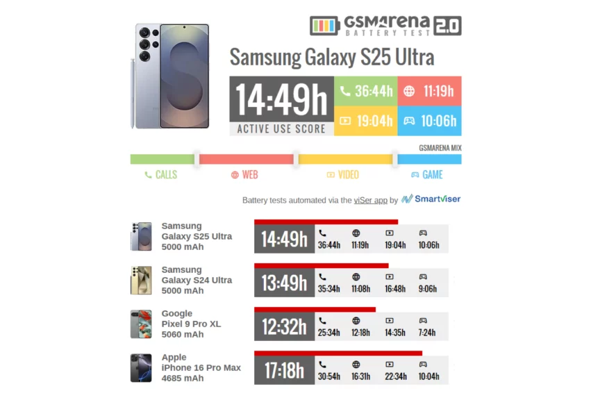 - Мощность — тут все одинаково, но S25 Ultra будет холоднее при длительных нагрузках (например, в играх).