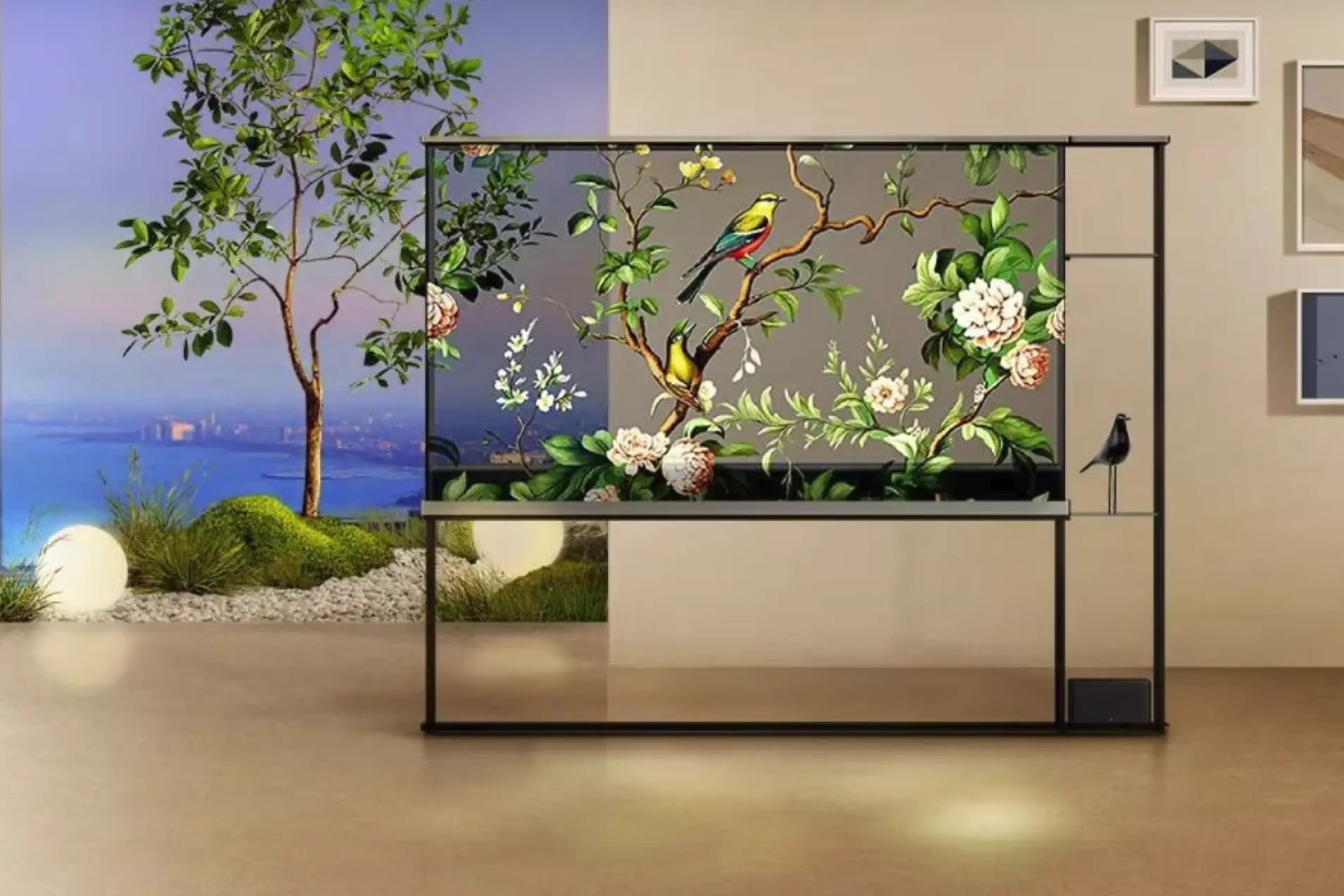 LG OLED T компания называет первым беспроводным прозрачным OLED-телевизором с разрешением 4K и технологией беспроводной передачи звука и видео через Zero Connect Box. Для экрана можно включить подсветку или смотреть на подобное голограмме изображение без нее. Кстати, компания заявляет, что эта интересная новинка поступит в продажу уже в 2024 году.