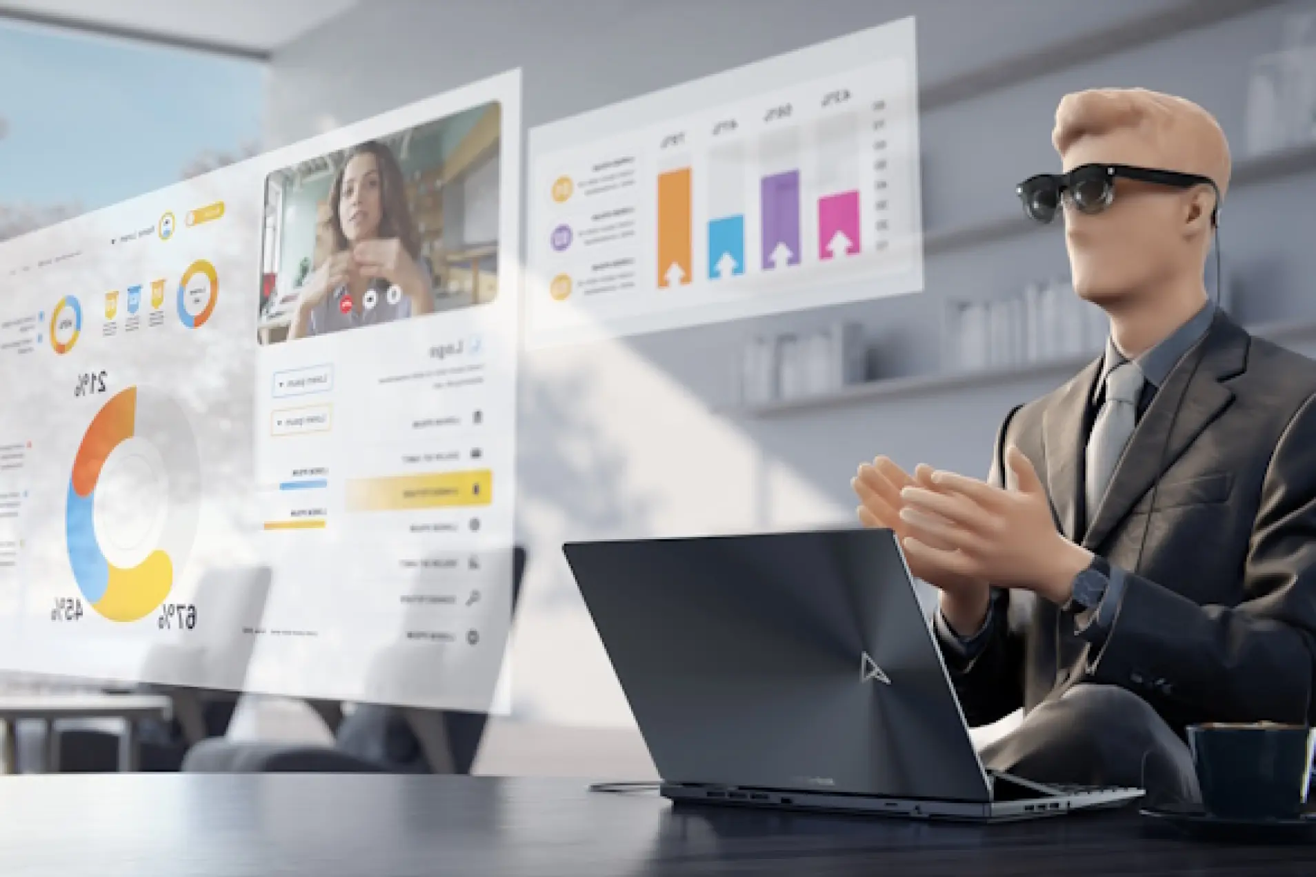 Несколько другое по концепции устройство представила компания Asus. AirVision M1 — это подключаемые к компьютеру очки для работы с виртуальным дисплеем. Особенностью устройства стала возможность создания нескольких виртуальных экранов для одновременной работы над несколькими задачами. Можно взять работу в поездку, оставив дома громоздкий дисплей. Не девайс, а мечта трудоголика!