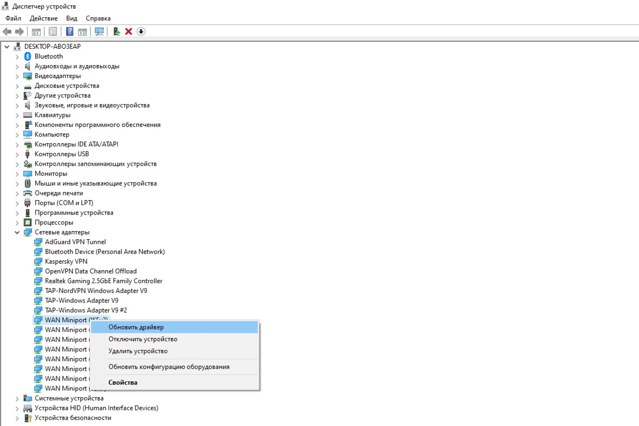 - Обновите драйвер через «Диспетчер устройств».