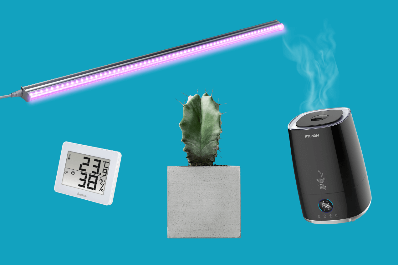 Оценить качество воздуха у себя дома можно с помощью метеостанции. Этот прибор, показывающий температуру и влажность, измеряющий атмосферное давление и даже рассчитывающий прогноз погоды на ближайшие дни, может помочь скорректировать микроклимат в квартире. Джунгли, безусловно, создавать у себя дома не нужно, но увеличение влажности хотя бы до 45-50% уже довольно позитивно скажется на растениях, не говоря уже о людях. Чтобы повысить влажность до приемлемых значений, в зависимости от полученных от метеостанции данных и от размеров вашей квартиры нужно подобрать подходящий увлажнитель. Вы можете позаботиться обо всех помещениях квартиры с помощью приборов, рассчитанных на работу как минимум на площади в 50 квадратных метров, а можете подобрать менее мощный вариант и использовать его непосредственно рядом с растениями. За фитолампы можно не беспокоиться: они рассчитаны на работу в условиях влажной среды.
