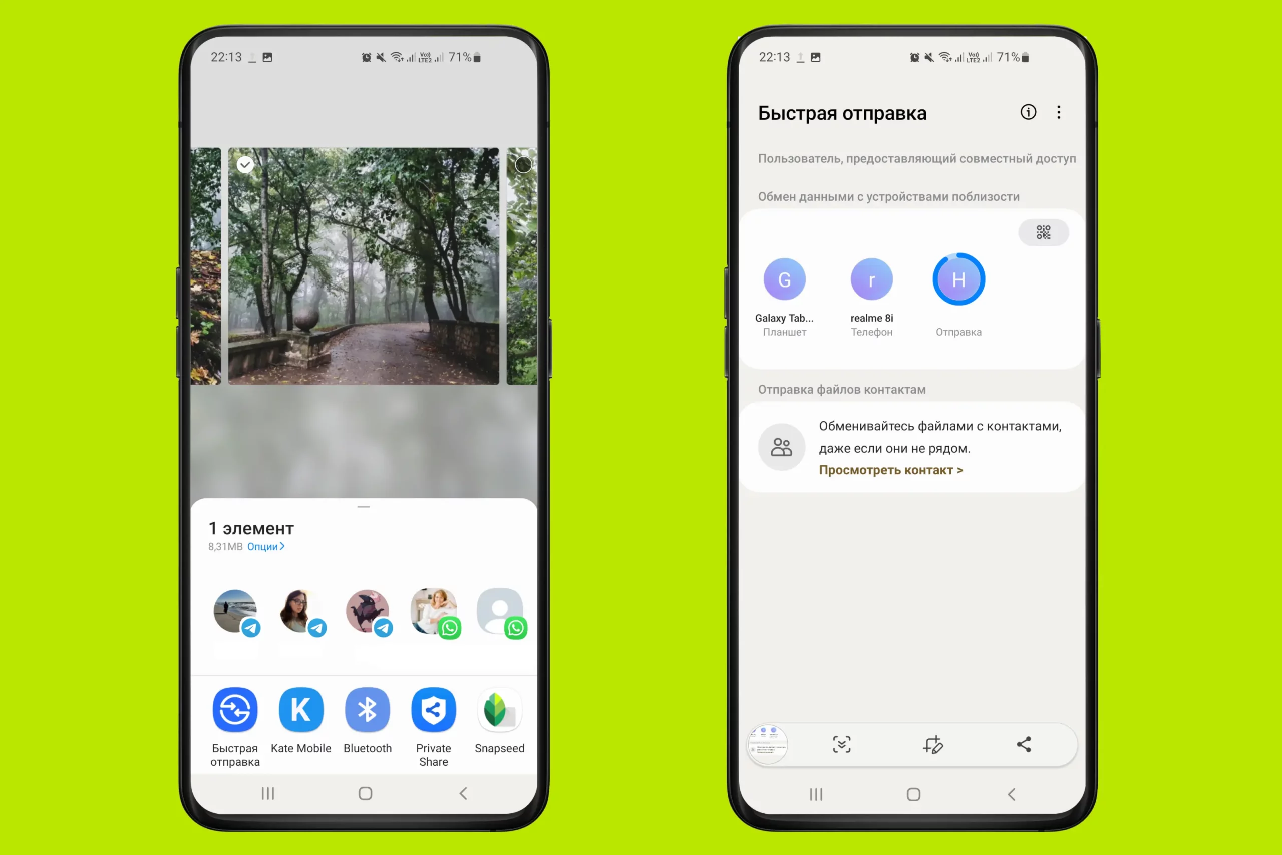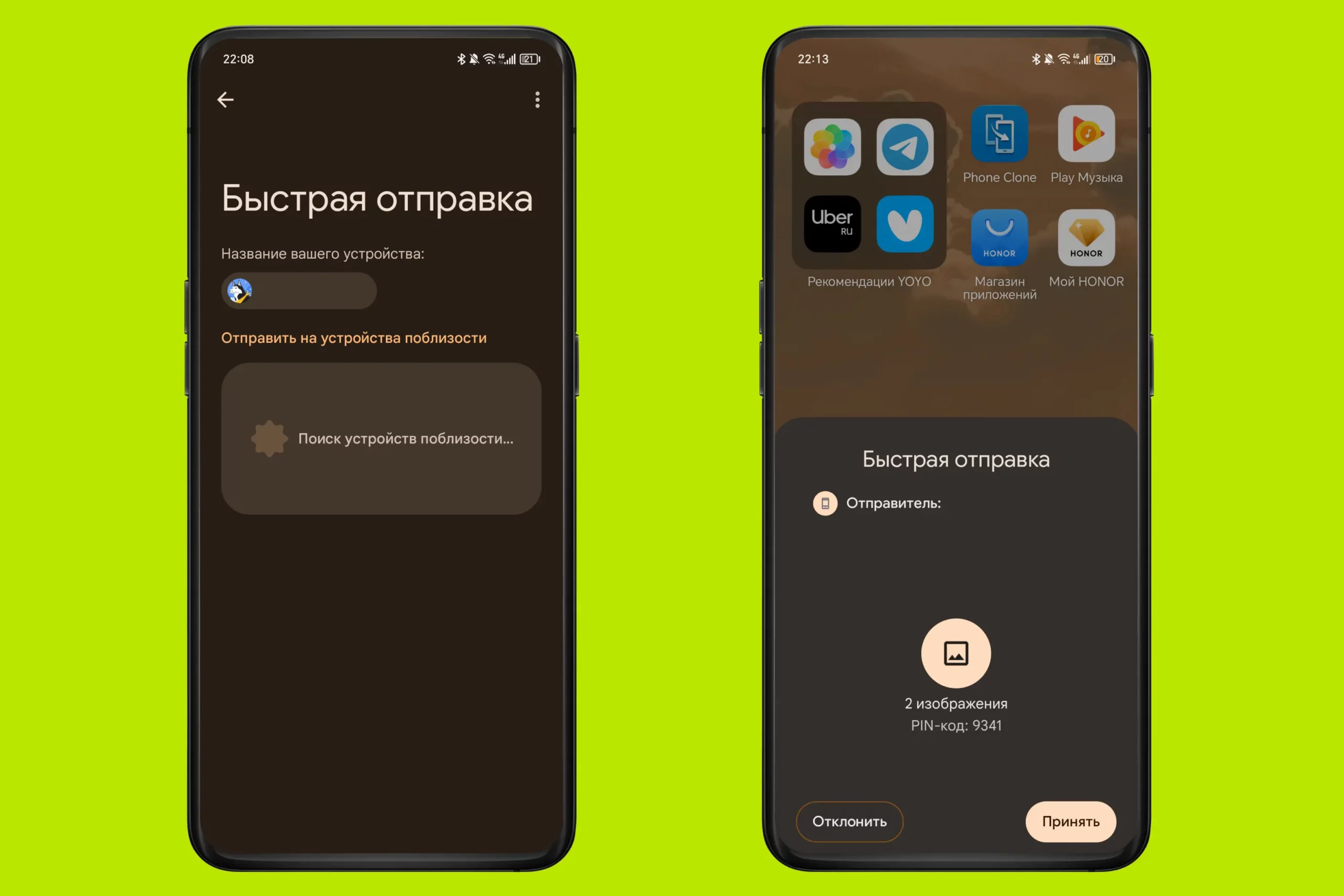 В зависимости от бренда вашего устройства Android вы можете также воспользоваться аналогичными утилитами, разработанными компаниями-производителями. У телефонов Samsung это Quickshare, у Xiaomi — Mi Drop, у Huawei и Honor — Huawei Share.