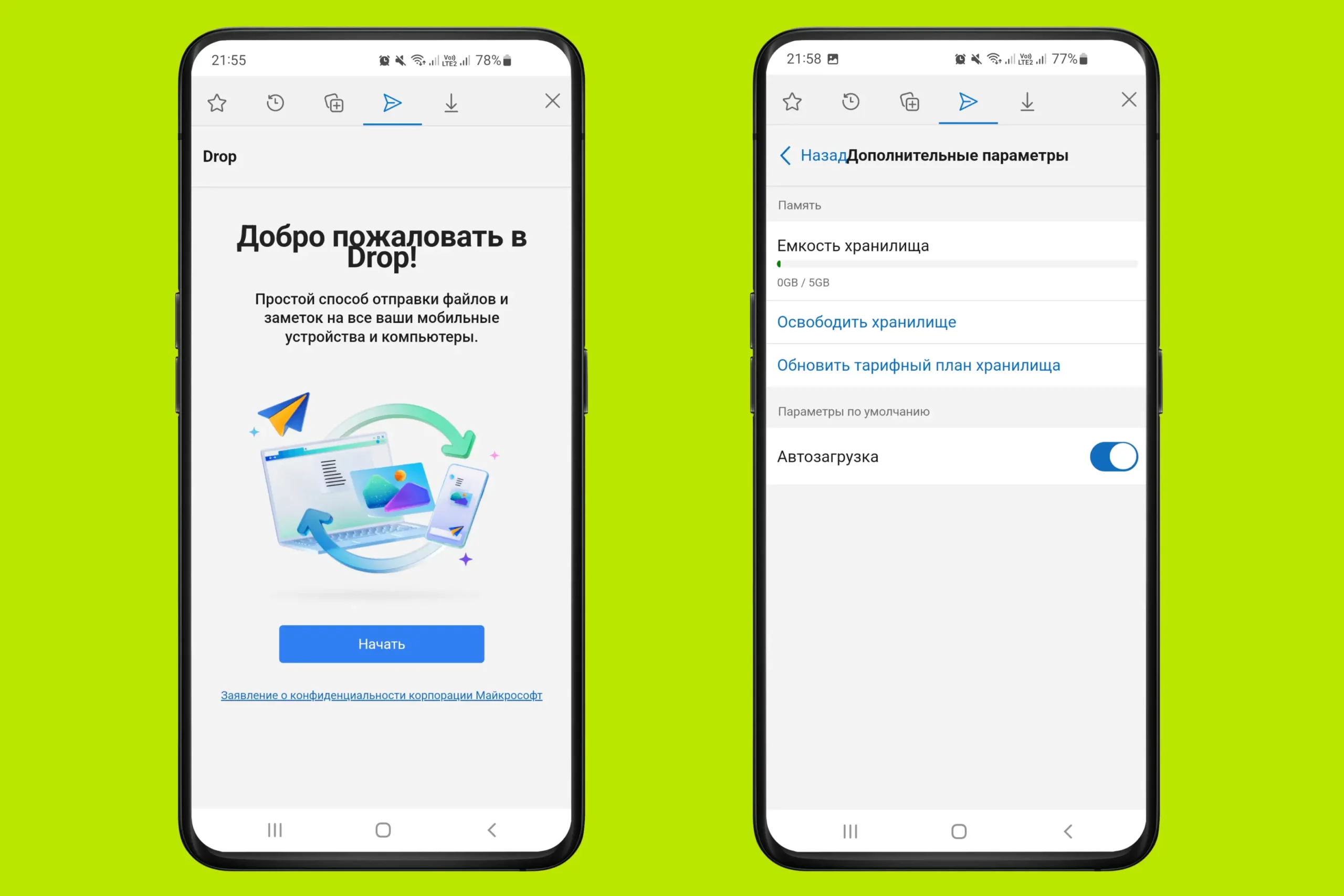 Плагин Microsoft Edge Drop встроен в браузер Microsoft Edge и позволяет легко и быстро обмениваться файлами без необходимости установки дополнительных утилит. Edge Drop работает на разных устройствах и платформах, включая Android, iOS и Windows. Чтобы перекинуть фотографии с телефона на телефон через браузер: