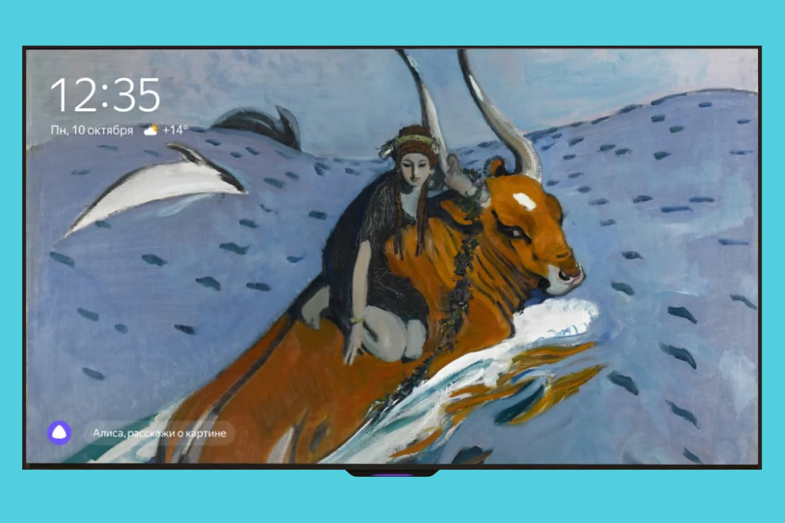 - На телевизоре можно запускать заставку, пока он выключен — так «Яндекс ТВ Станция» станет прекрасным дополнением к интерьеру.