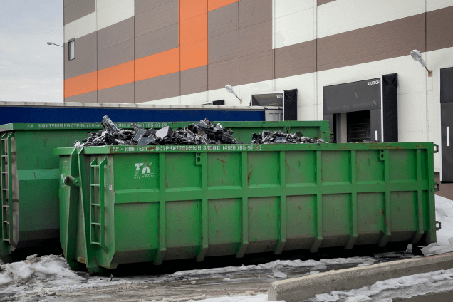 Впечатляющих размеров контейнер с уже измельченной техникой ждет перед воротами цеха, когда на конвейере ручной сортировки освободится место для новой партии сырья
