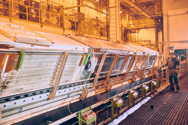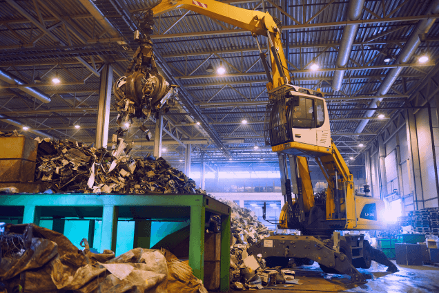 Грейферный перегружатель сильно упрощает и ускоряет работу завода: за один раз махина ссыпает в измельчитель больше техники, чем пара грузчиков за четверть часа
