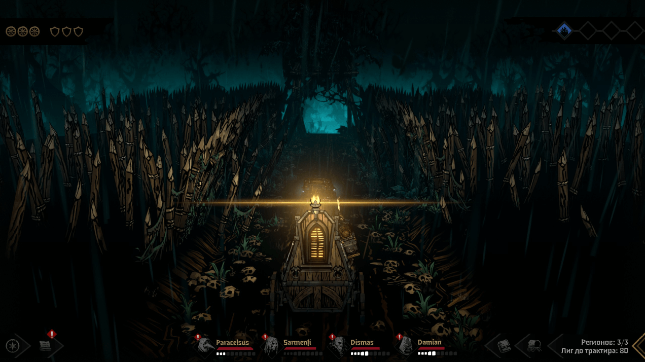 Вся Darkest Dungeon 2 — это пять путешествий через все местное королевство к большой горе с монстром. Эдакое играбельное роуд-муви. Вы собираете отряд из четырех героев, сажаете их в дилижанс и пытаетесь доехать до заснеженной вершины сквозь всех чудищ, тьму и ловушки.
