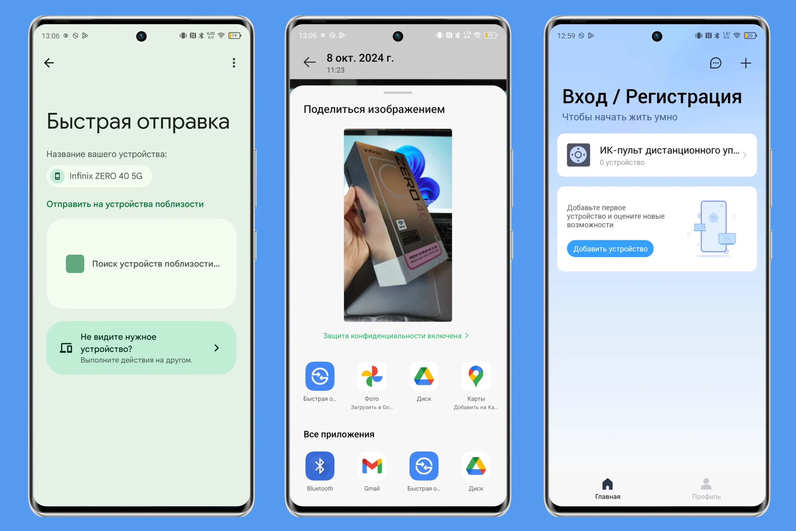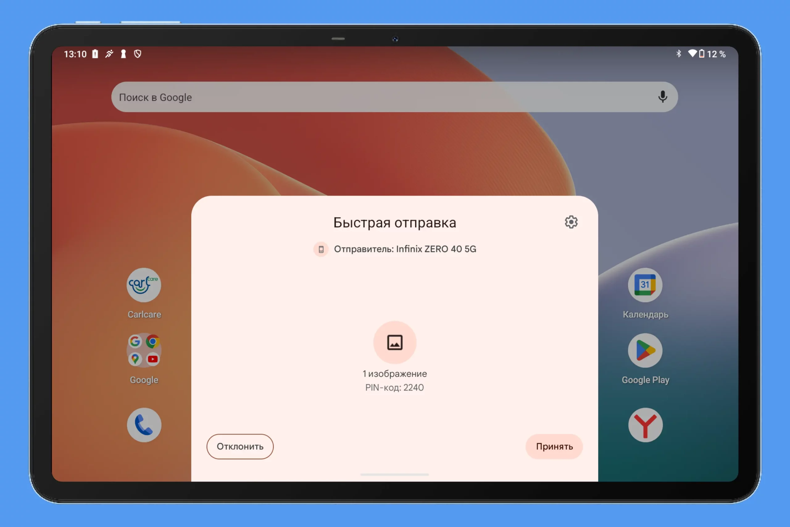 Первый планшет от Infinix уже вошел в экосистему бренда, а значит, передавать и получать файлы теперь можно за пару секунд — через систему быстрой отправки. На планшете или на смартфоне можно добавить устройства, с которыми мы будем взаимодействовать, — тогда передача файлов будет проводиться моментально.