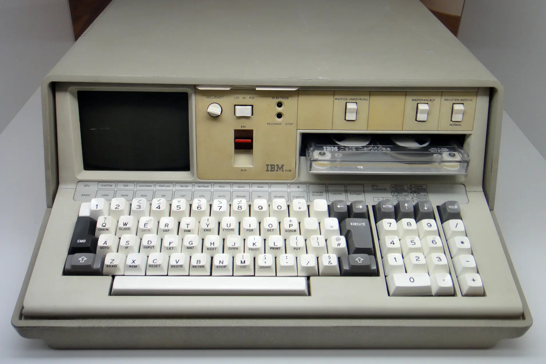 Первым же портативным персональным компьютером считается IBM 5100 1975 года. В данном случае под портативным мы понимаем такой компьютер, который при перемещении с места на место достаточно просто подключить к электросети, не пересобирая и не перекоммутируя всю установку. Так вот, IBM 5100, весивший всего 25 кг, даже снабжали специальным кейсом (не входил в комплект и приобретался отдельно), но цена, начинавшаяся с 8975 долларов, и необходимость владеть языком программирования APL сильно ограничивали круг его пользователей. Зато IBM 5100 стал прародителем устройства, по которому до сих пор называют целый класс компьютеров. Речь идет об IBM Personal Computer (он же IBM 5150, он же IBM PC) — устройстве, которое, появившись в продаже в 1981-м, оказало огромное влияние на рынок ПК. Кстати, он стоил 1565 долларов, то есть примерно 5000 сегодняшних долларов.