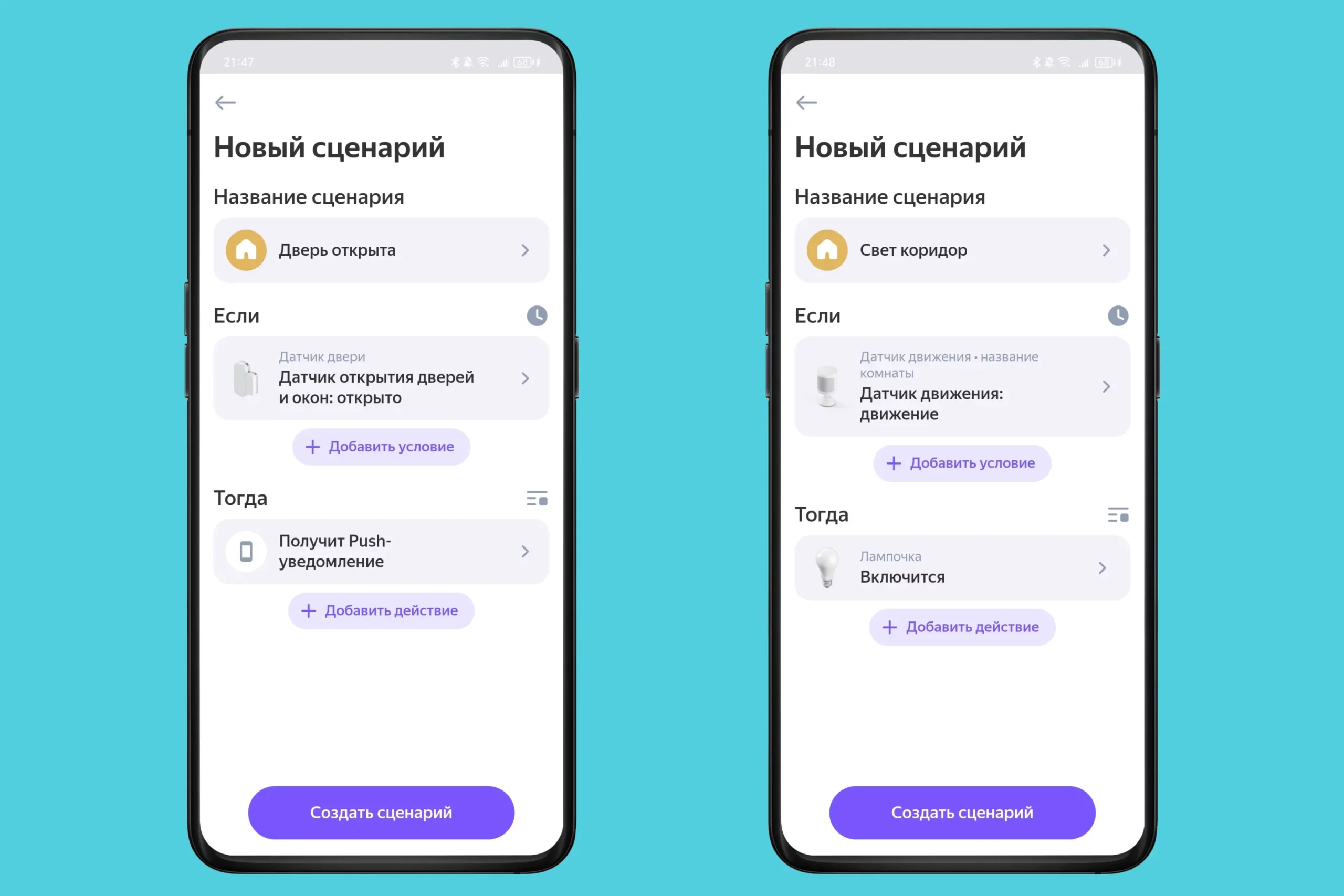 Примеры сценариев в приложении «Умный дом» от «Яндекса»